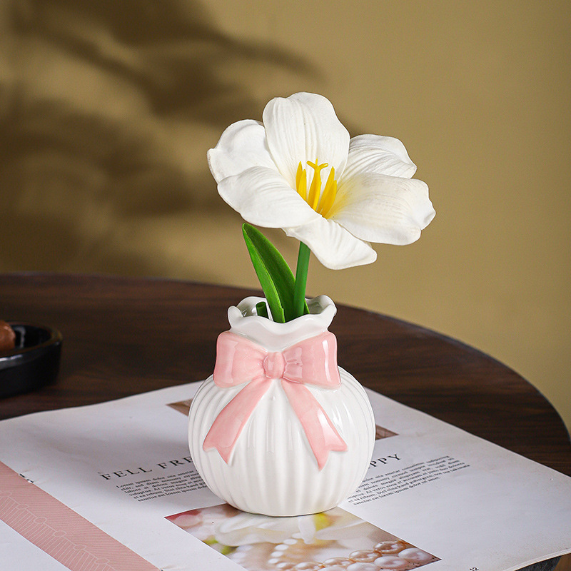 アマゾンリボンブーケ花瓶セラミック装飾品工芸品リビングルームのデスクトップ装飾ホリデーギフトアレンジメント