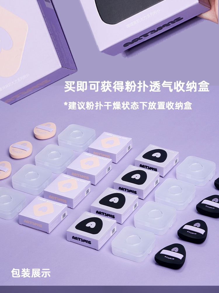 色の分類 ヘイヘイ ブラック パウダー パフ (シングルパック),リンシスターパウダーパフ(シングルパック),黒ダンダンパウダーパフ(シングルパック),ブラックベイベイパウダーパフ(シングルパック),ベルベットパフ(単品),ベルベットパフ(ダブルパック),両面パウダーパフ(ダブルピース),ウェット(シングルパック),小さな耳(ダブルパック)