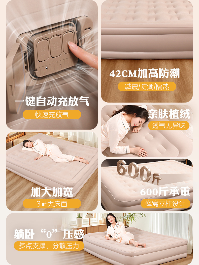 自动充气床垫加高折叠床家用单人帐篷充气床垫户外露营床垫双人床