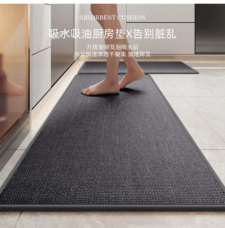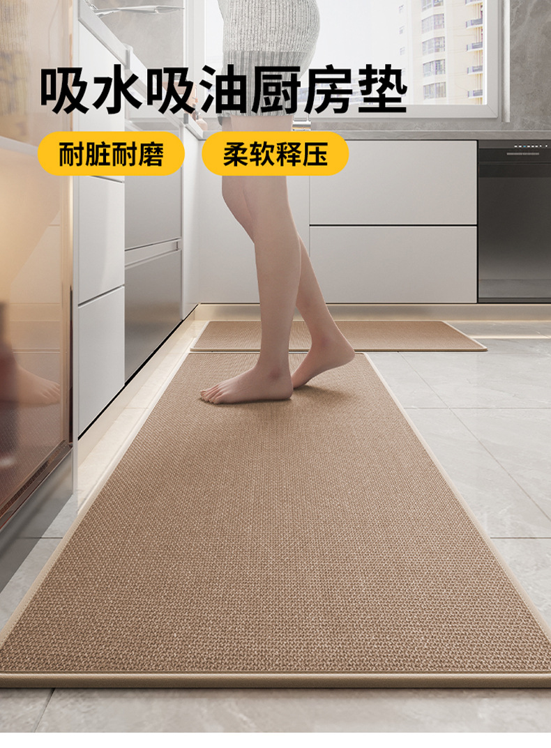 跨境热销厨房脚垫吸水防滑地垫玄关门垫耐磨耐脏新款编织亚麻脚垫