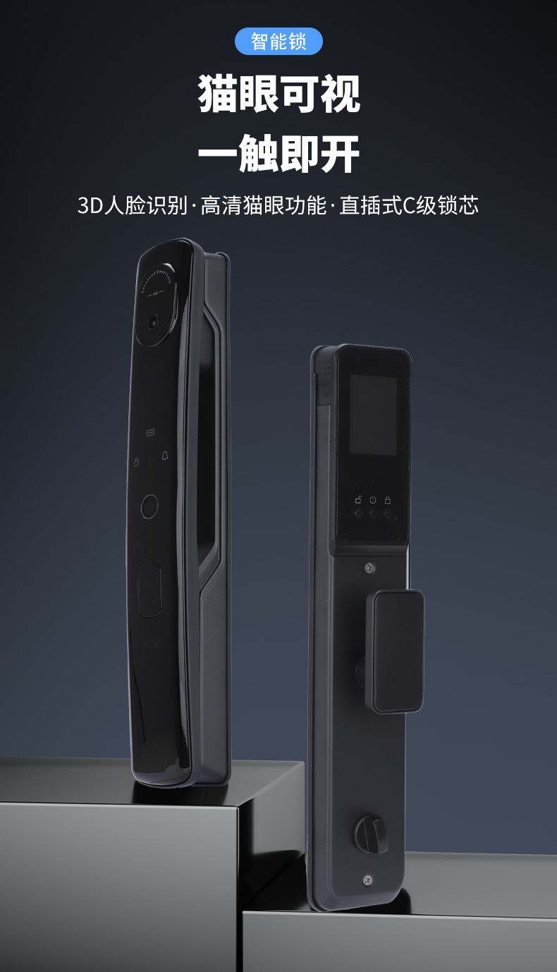 新型全自動指紋ロック家庭用防犯ドア顔認識スマートロック監視猫眼型電子暗号ロック