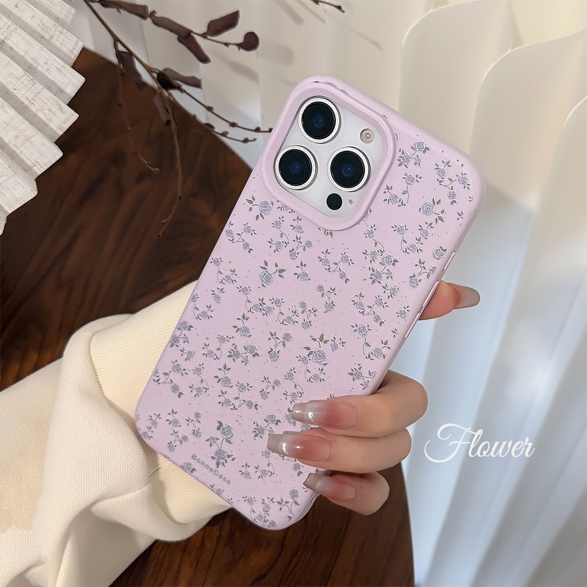 紫色の小花柄、Apple 16/17 Pro Max/14/13対応、韓国風、優しい、爽やか、ソフトなiPhoneケース