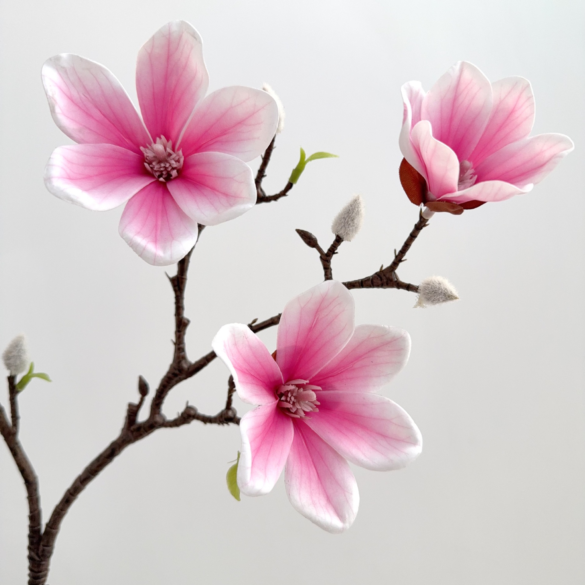 濃いピンク-5 マグノリアの花,淡いピンク色のマグノリアの花 5 本,白と緑 - 5本のモクレンの花,白 - 5頭のモクレン