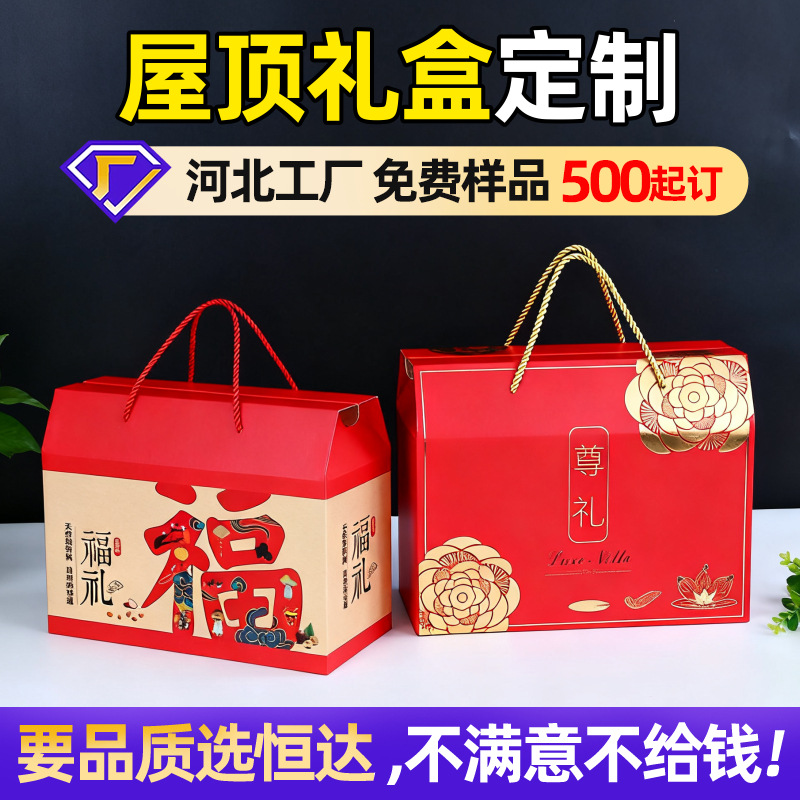 河北瓦楞纸包装盒工厂新年点心红色瓦楞纸礼盒提手屋顶包装盒定做