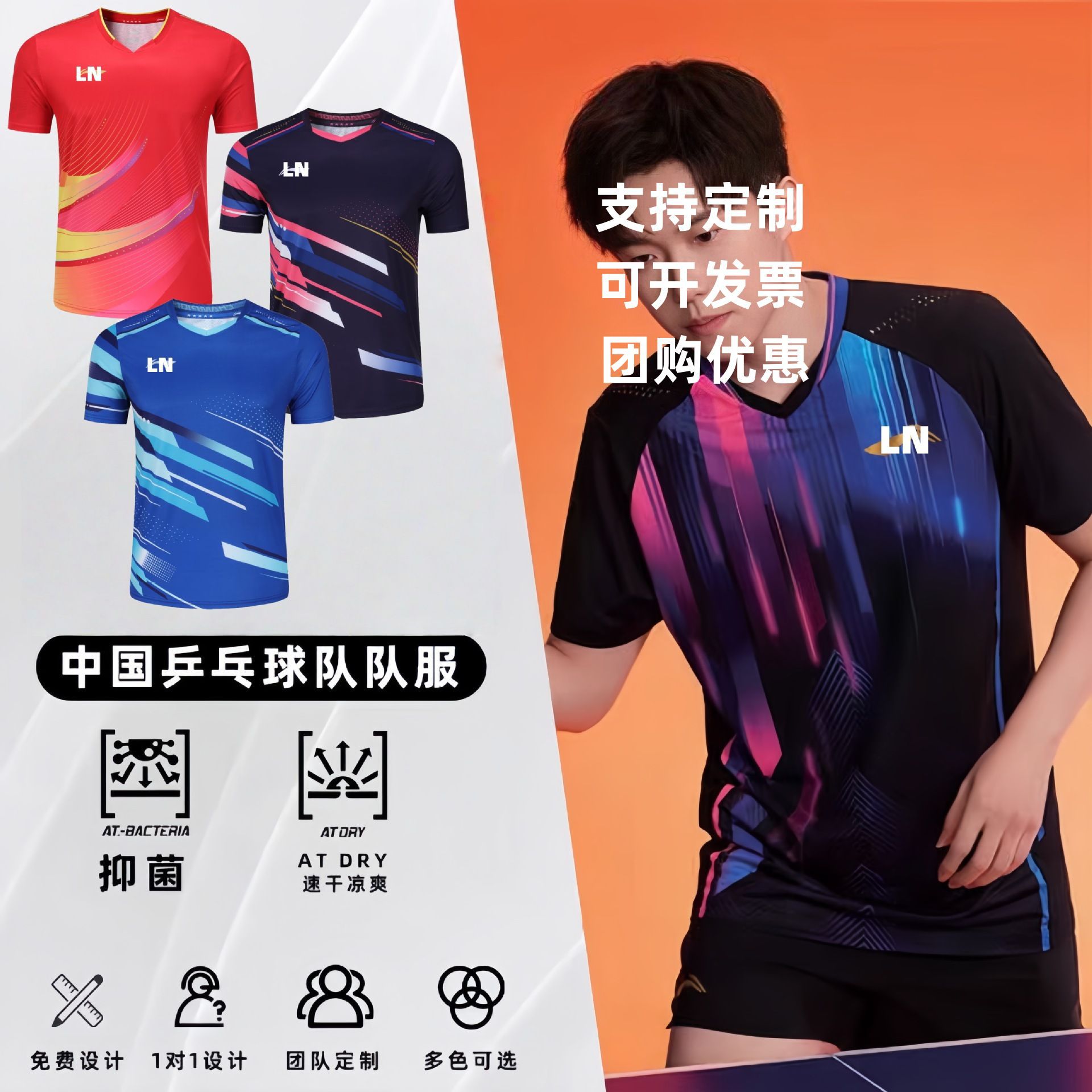 2025新款LN乒乓球服世乒赛国乒队同款大赛服男女同款速干乒乓球衣