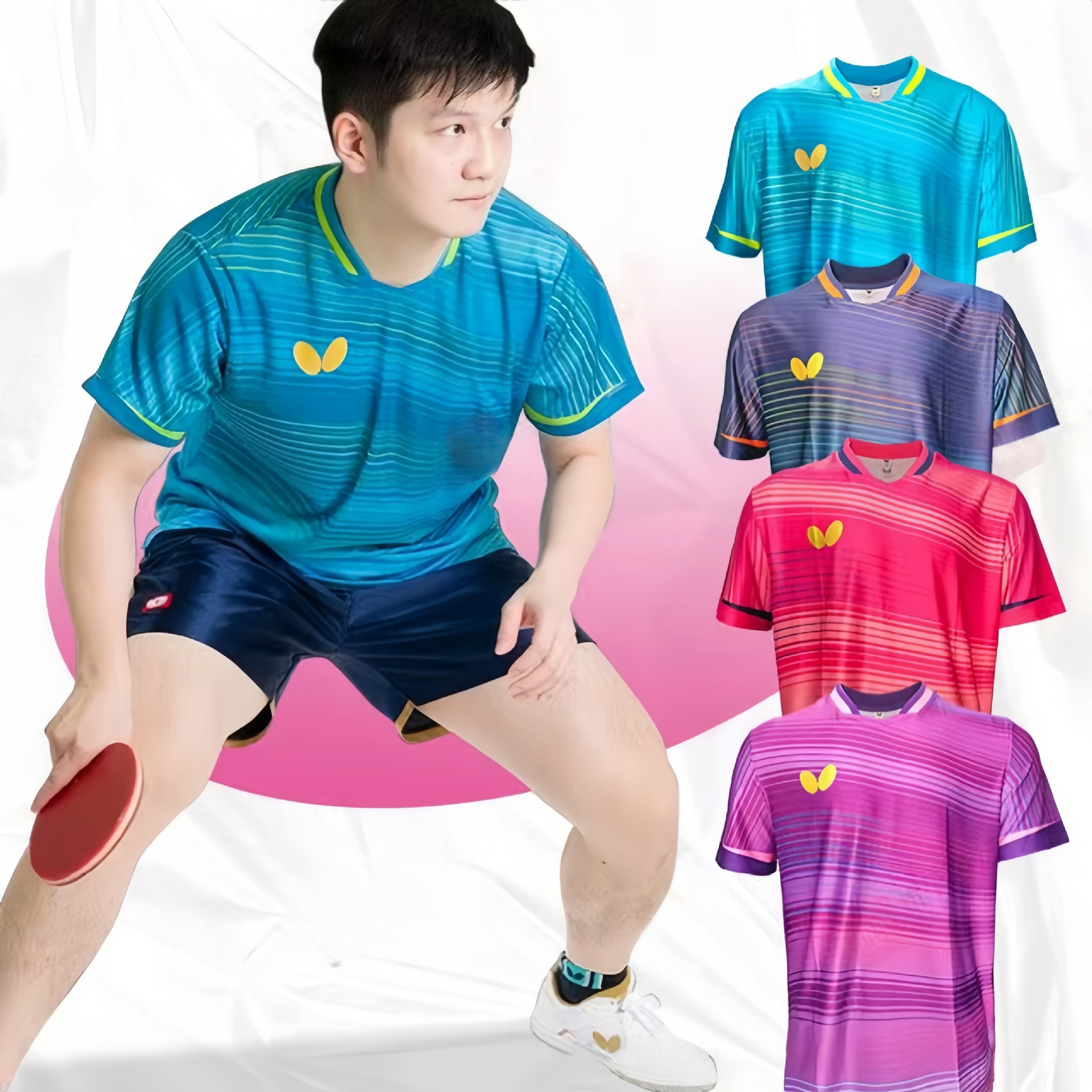 蝶卓球ユニフォーム、男性、女性、男の子、女の子用、同じスポーツ半袖卓球トップス、プリントチームユニフォーム