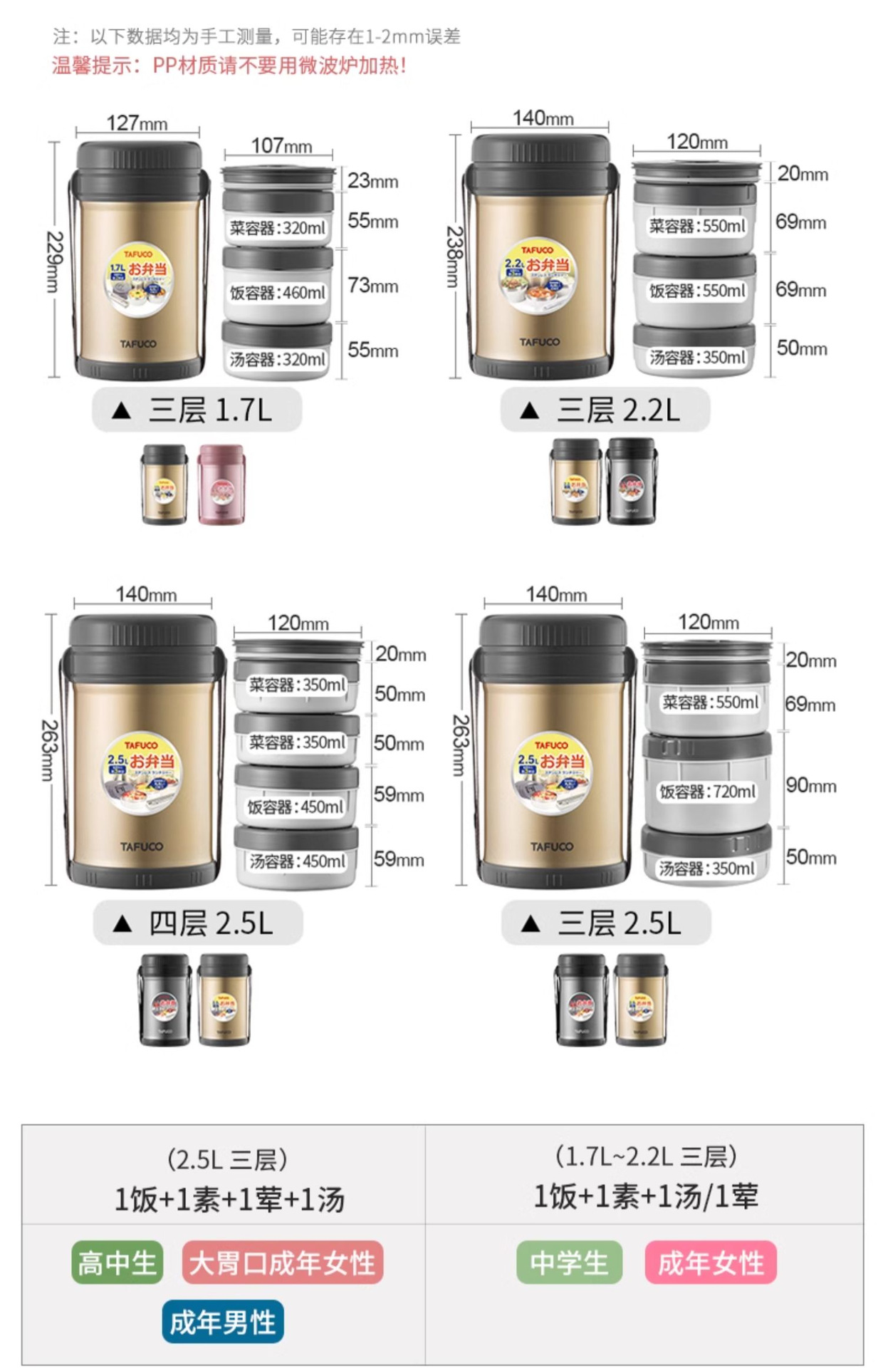 【316スチール・火傷防止モデル】2.2L ブラック 3層 T2522,【316スチール・火傷防止モデル】2.2L シャンパンカラー 3層 T2523,【316スチール・火傷防止モデル】2.5L ブラック 4層 T2524,【316スチール・火傷防止モデル】2.5L シャンパンカラー 4層 T2525,【316スチール・火傷防止モデル】1.7L シャンパンカラー 3層 T2538,【316スチール・火傷防止モデル】1.7L ピンク 3層 T2539,【316ステンレス製・火傷防止タイプ】2.0L パープル 三層構造 T2553,【316ステンレス・火傷防止タイプ】2.0 グレー 三層 T2554,【316ステンレス製・火傷防止タイプ】2.3L パープル 四層 T2563,【316ステンレス製・火傷防止タイプ】2.3L グレー 四層 T2564,T0281 ナイトブラック 3層 2.2L,T0282 ジェントルマンブルー 3層 2.2L,T0286 ナイトブラック 4層 2.5L,T0287 ジェントルマンブルー 4層 2.5L,ダークブルー 2.9L 4層火傷防止内箱 T0395,ホワイト 2.9L 4層火傷防止内箱 T0396,ダークブルー 2.5L 3層火傷防止内箱 T0390,ホワイト 2.5L 3層火傷防止内箱 T0391,T6240 ウォルナットゾン 2L,T6241 ミッドナイトブルー 2L,T6250 ウォルナットゾン 2.3L,T6251 ミッドナイトブルー 2.3L