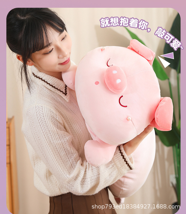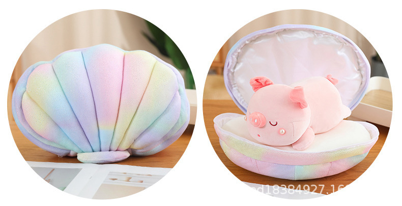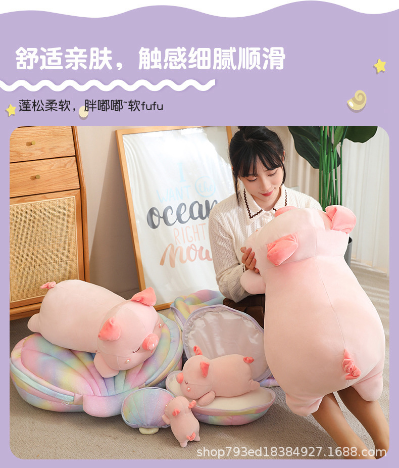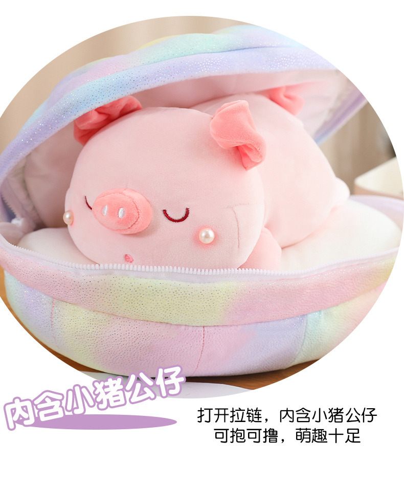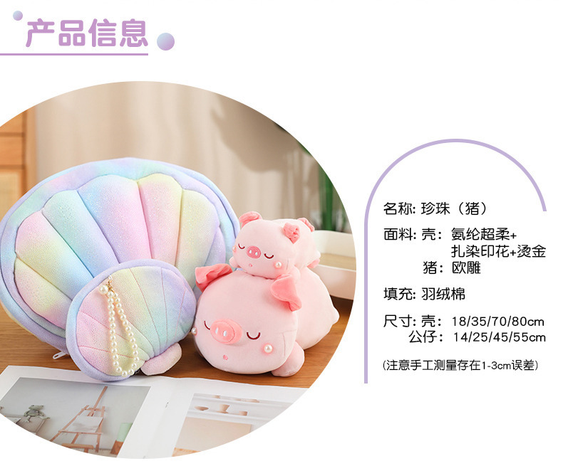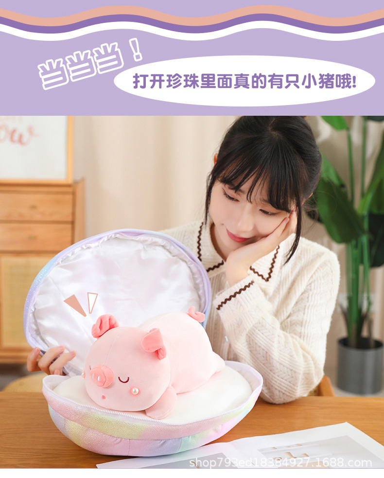 色とりどりの貝殻真珠の掌の上で明のブタの蚌埠のブタのぬいぐるみのぬいぐるみの人形のピンクは彼女の祝日の贈り物を送ります。