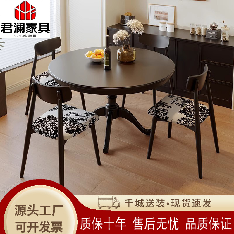 アメリカンラウンド無垢材ダイニングテーブルと椅子、小さな家庭用ダイニングテーブル、ラウンドテーブル、ブラックフレンチミッドレトロスタイルダイニングテーブル