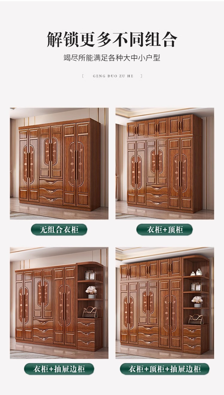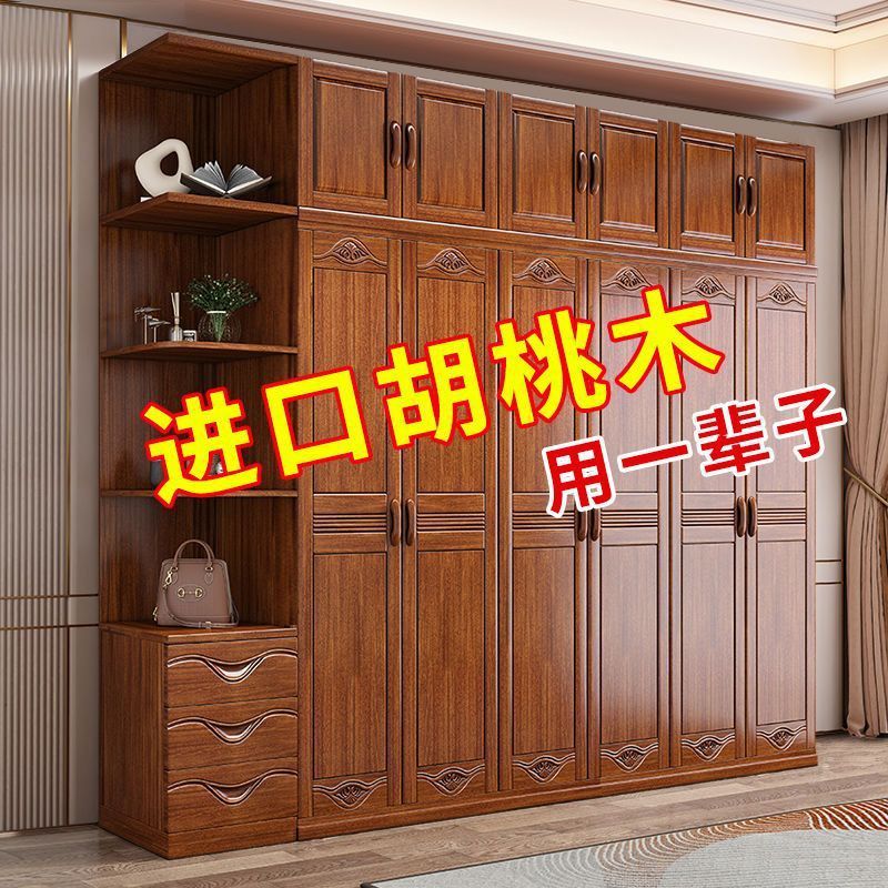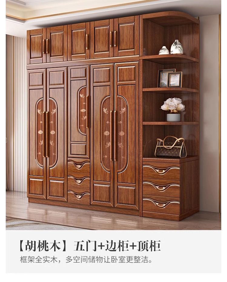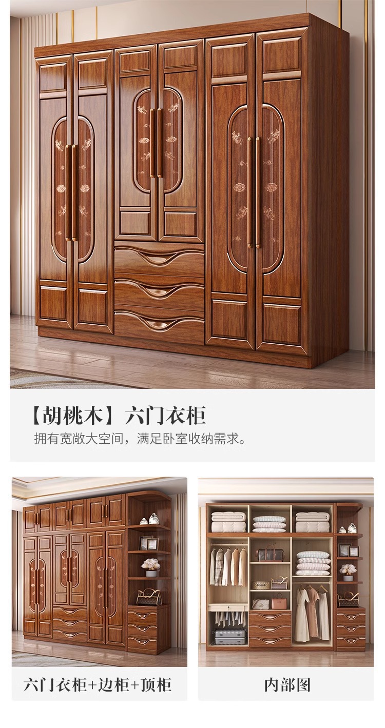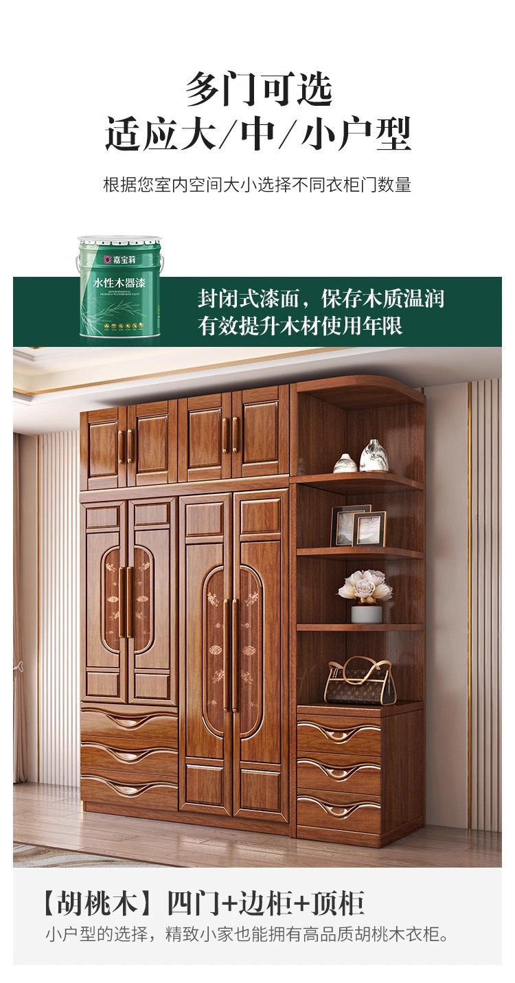 工厂直销胡桃木实木衣柜衣橱家用卧室3456门衣柜带边柜顶柜卧室