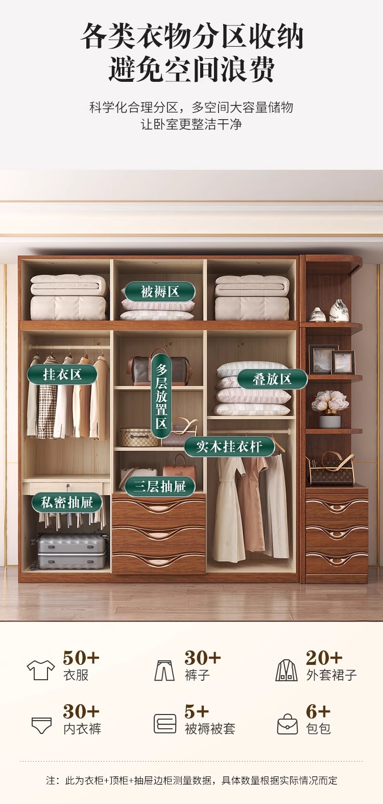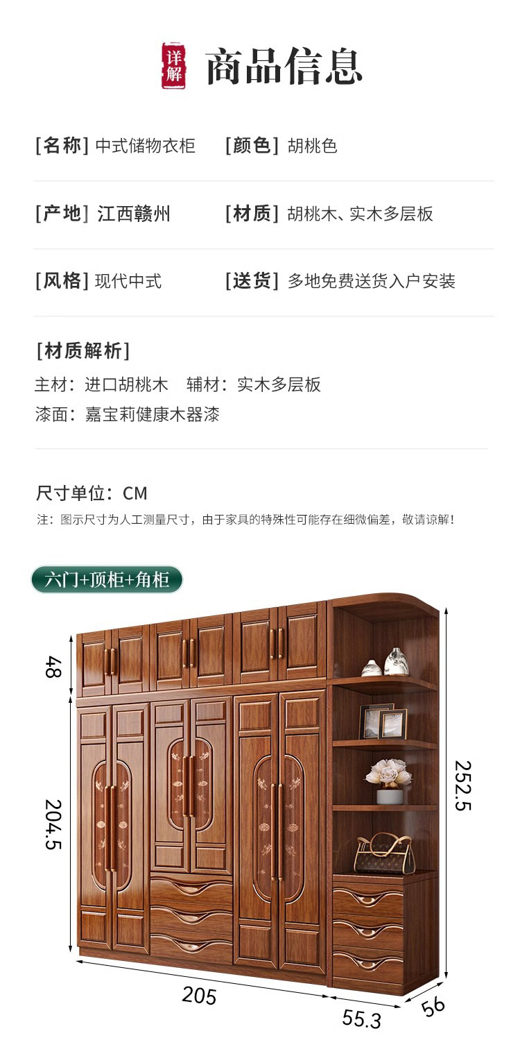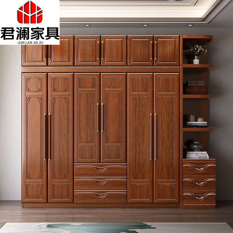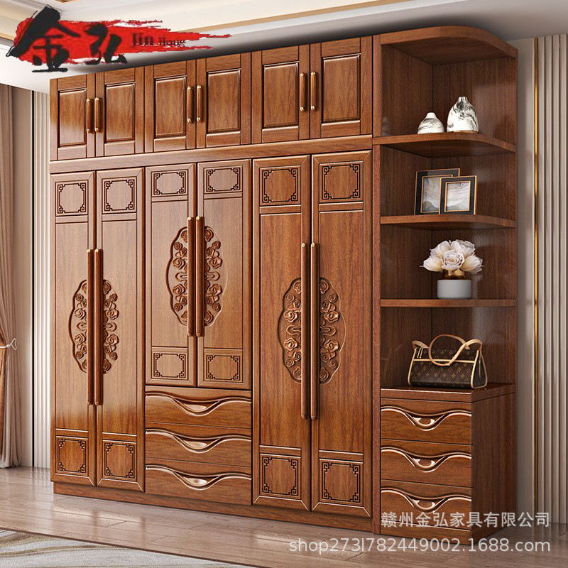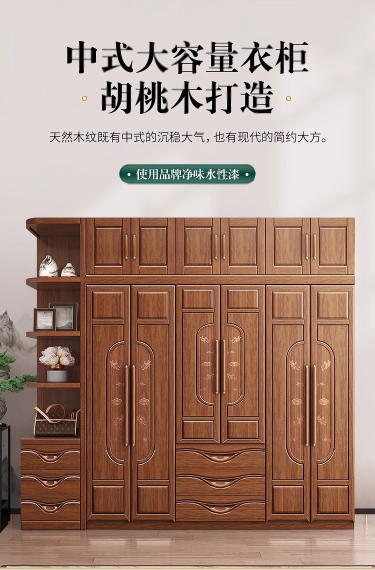 工厂直销胡桃木实木衣柜衣橱家用卧室3456门衣柜带边柜顶柜卧室