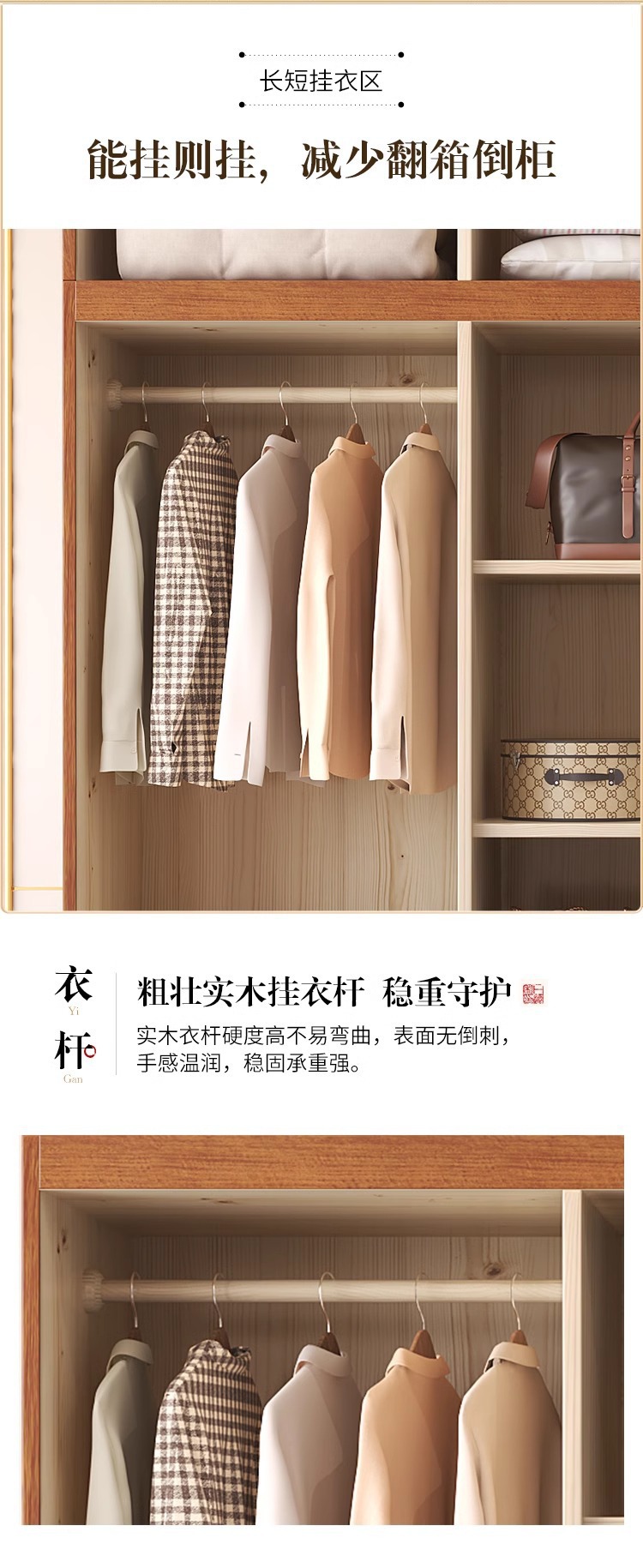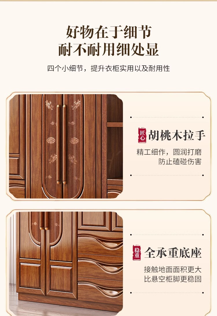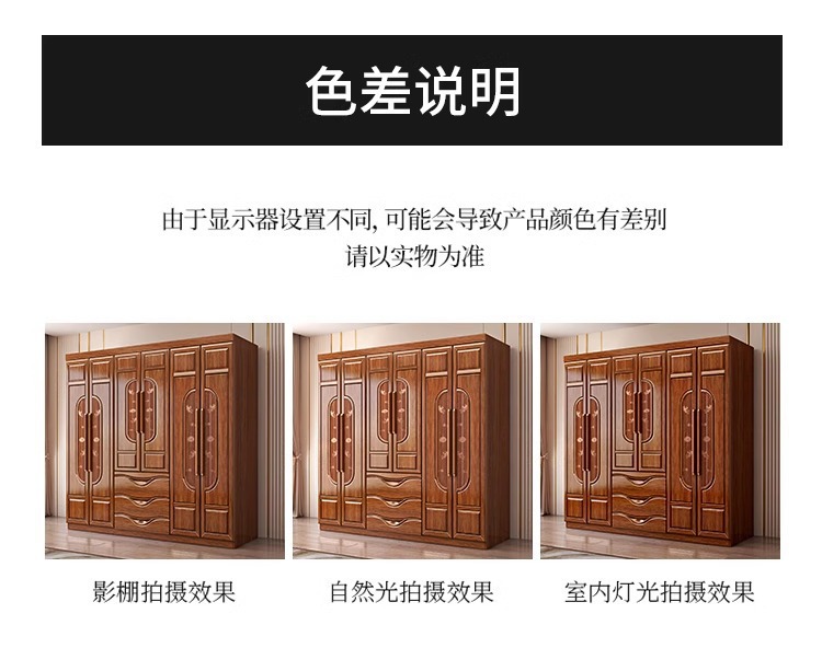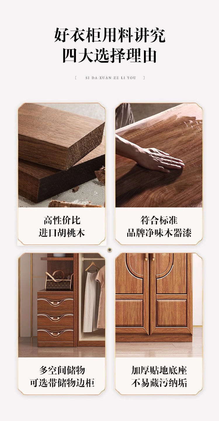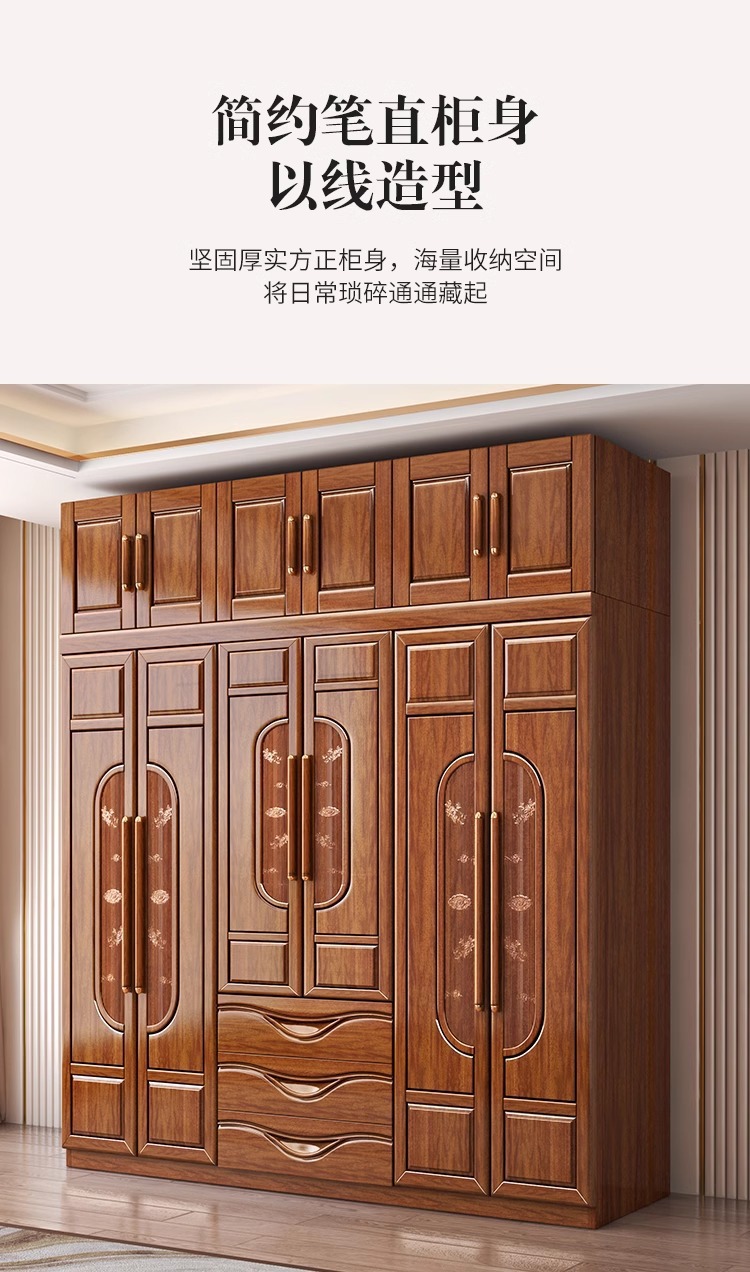 工厂直销胡桃木实木衣柜衣橱家用卧室3456门衣柜带边柜顶柜卧室