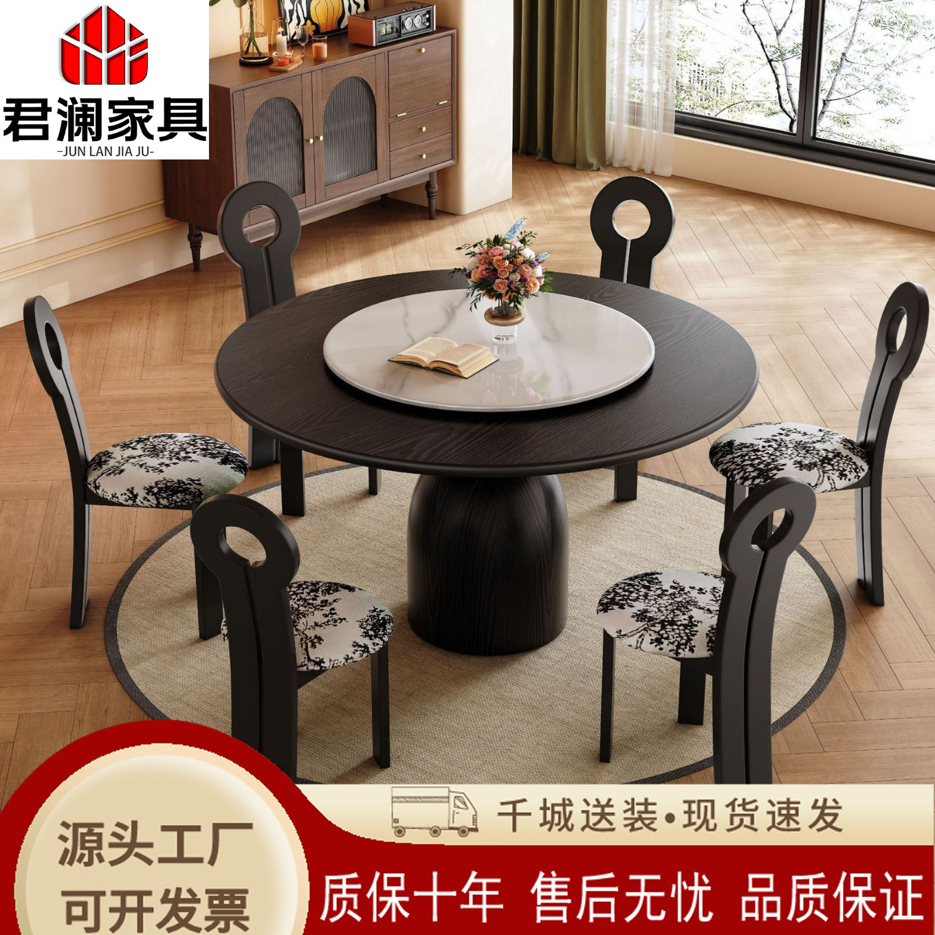 Wansen フレンチレトロスタイルアッシュラウンドテーブル小さなアパートホームダイニングテーブルダイニングテーブルと椅子の組み合わせロックプレートターンテーブル