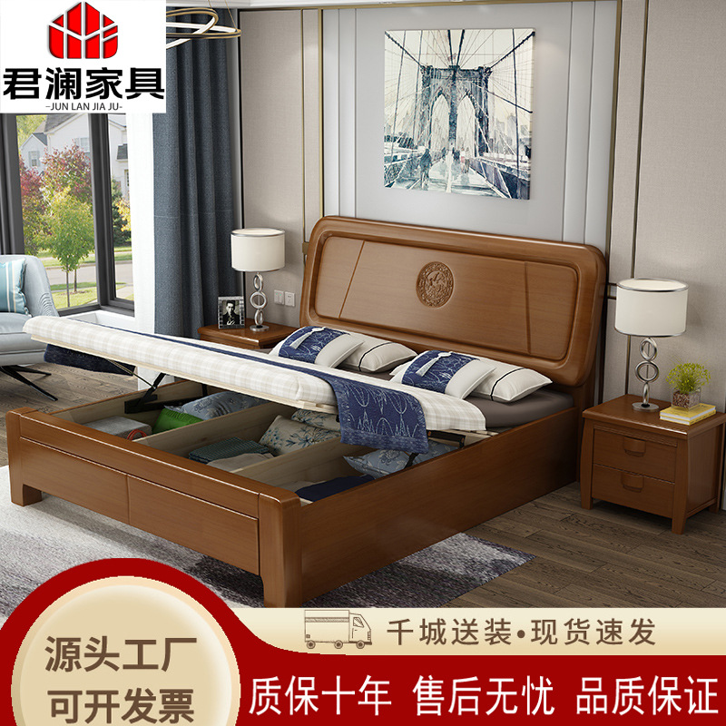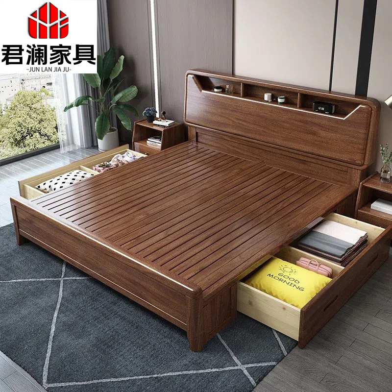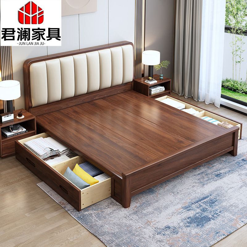 胡桃木床2メートル大ベッド全実木新中国式軽贅沢現代シンプル貯蔵物主寝室1.8メートルツインベッド
