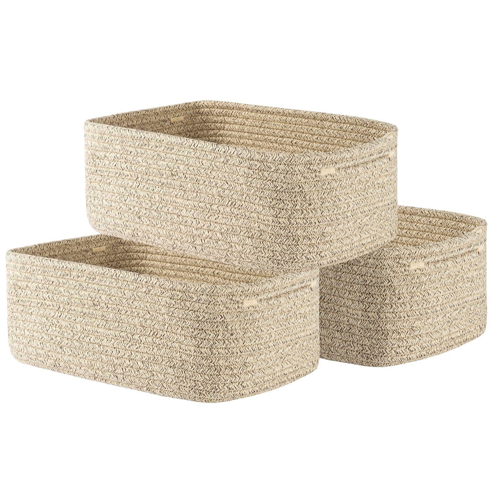 綿糸3点セット シンプルなリビングルーム整理バスケット 家庭用雑貨収納バスケット スナックおもちゃ化粧品収納ボックス