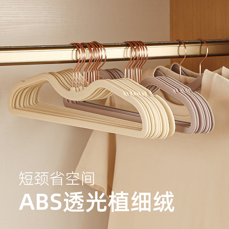 工場卸売ショートネックハンガー滑り止め無痕低首ビロード植毛ハンガー家庭用超低省スペース