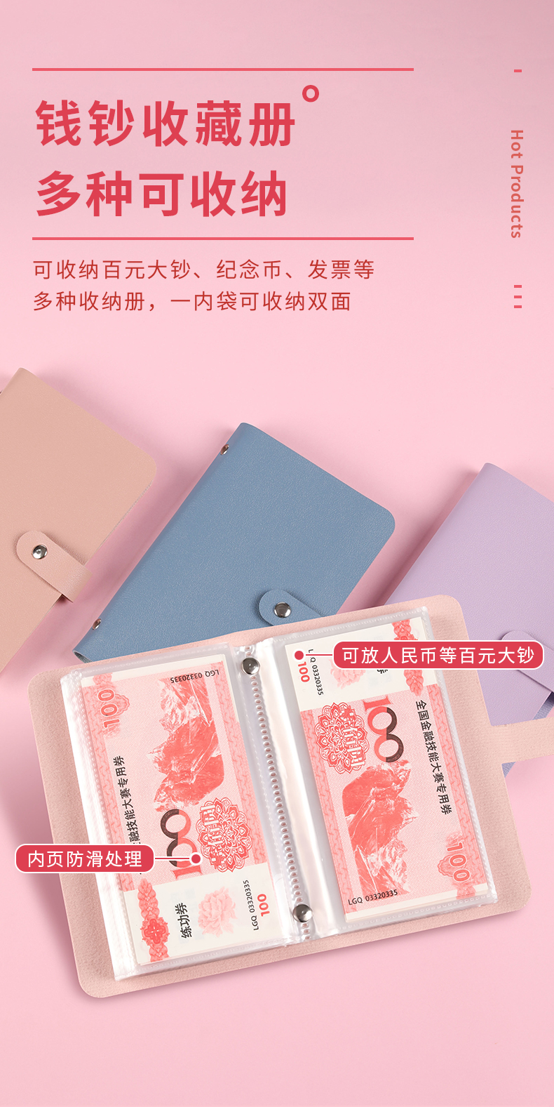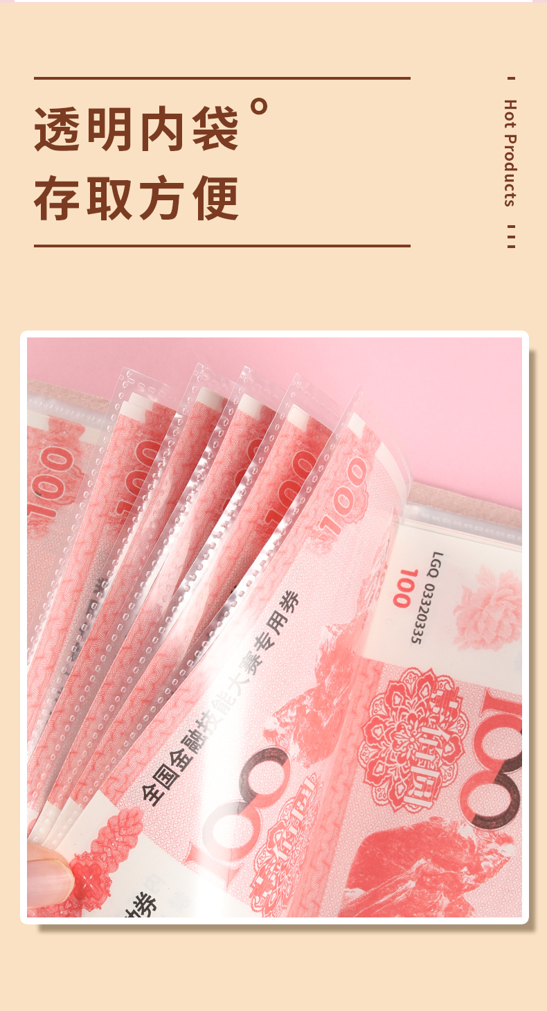 100枚入携帯式紙幣収納帳コイン収納帳記念紙幣収納ケース紙幣保護袋