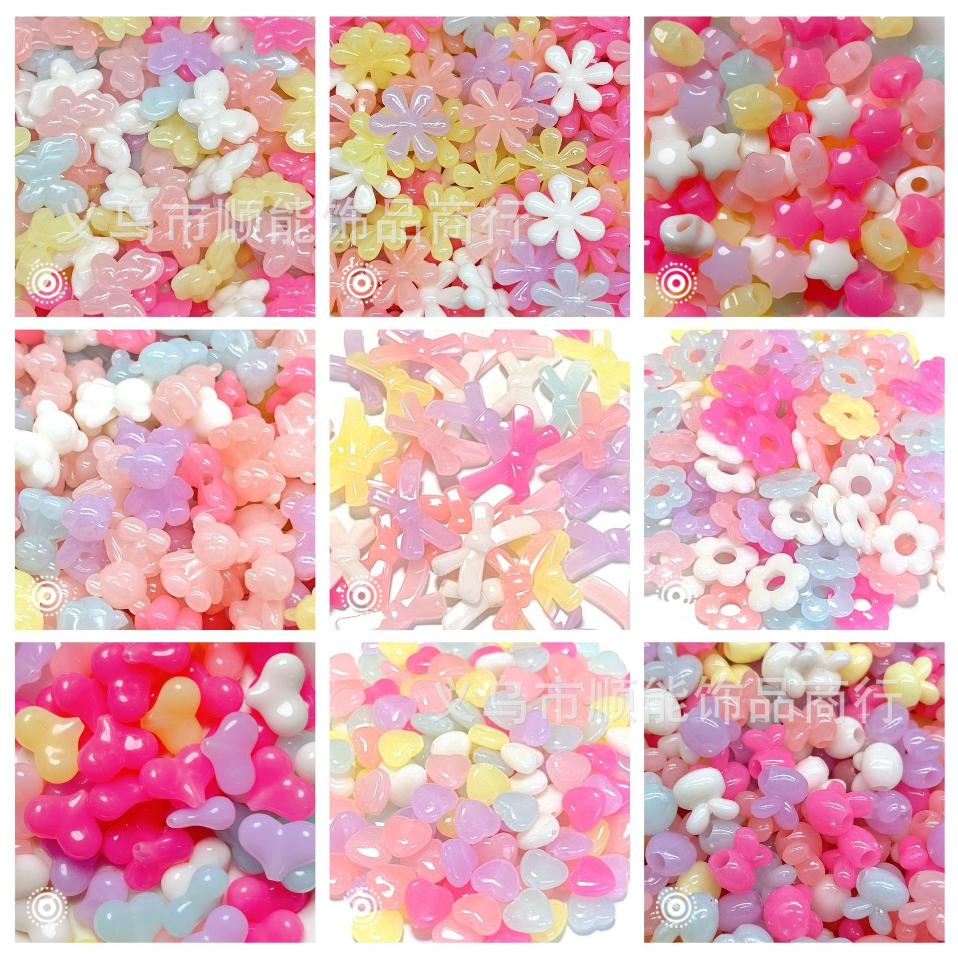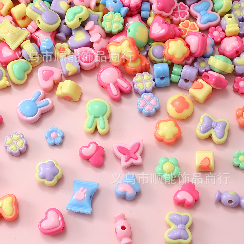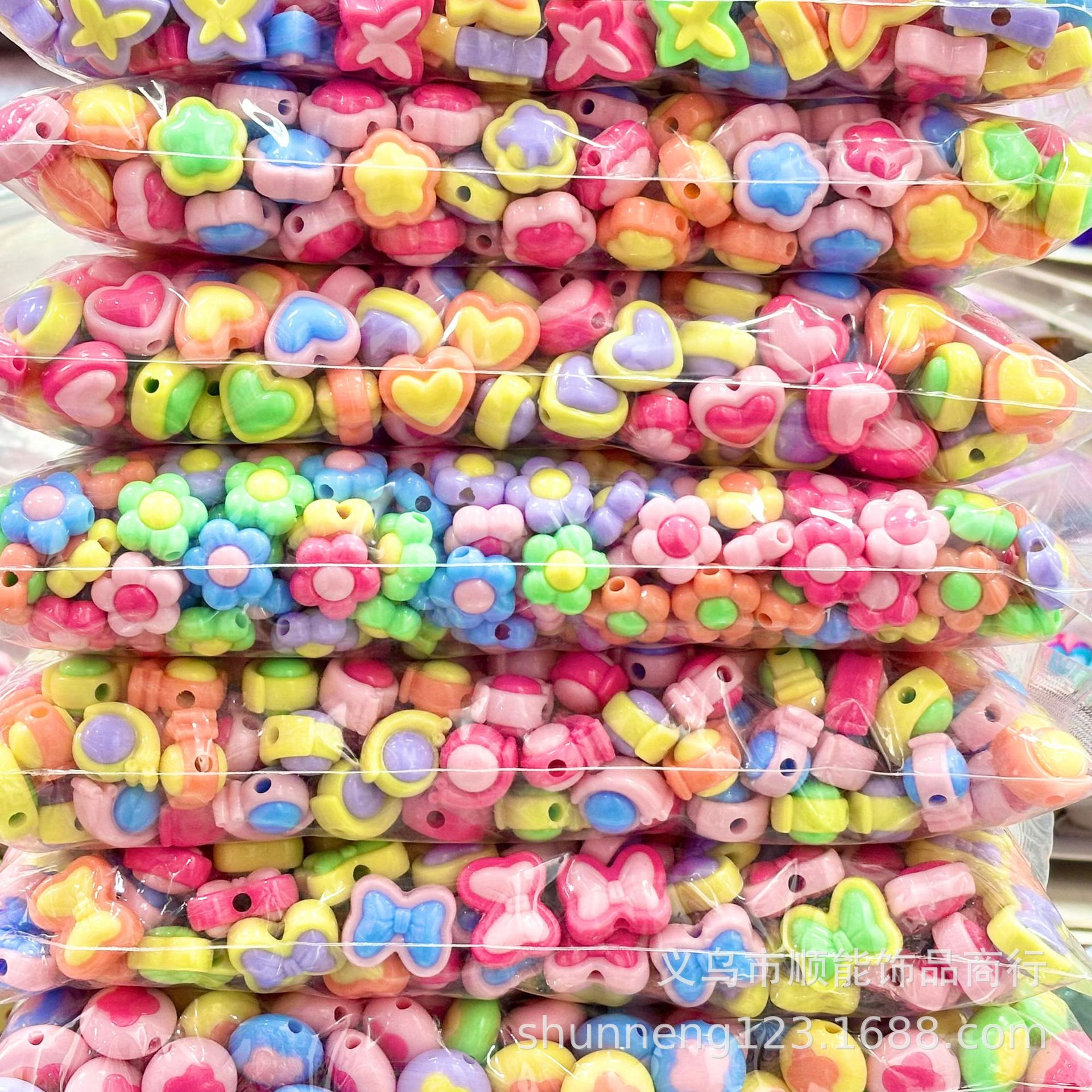 亚克力双色拼色珠中珠串珠手工散珠子 爱心花朵手链手串饰品配件