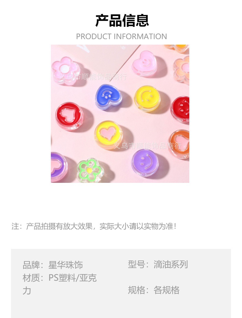 亚克力卡通滴油爱心笑脸花朵鸭子蜜蜂蝴蝶 手串珠子手机链饰品配