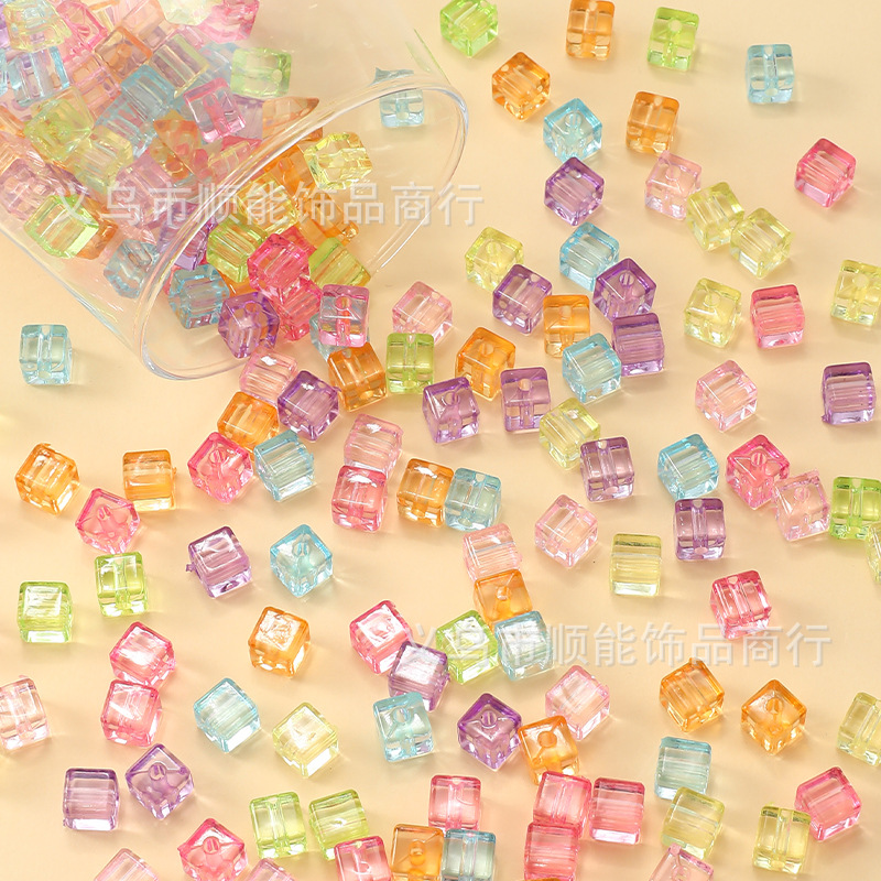 亚克力高透彩小方珠四方珠串珠手工散珠子手机链手串儿童饰品配件