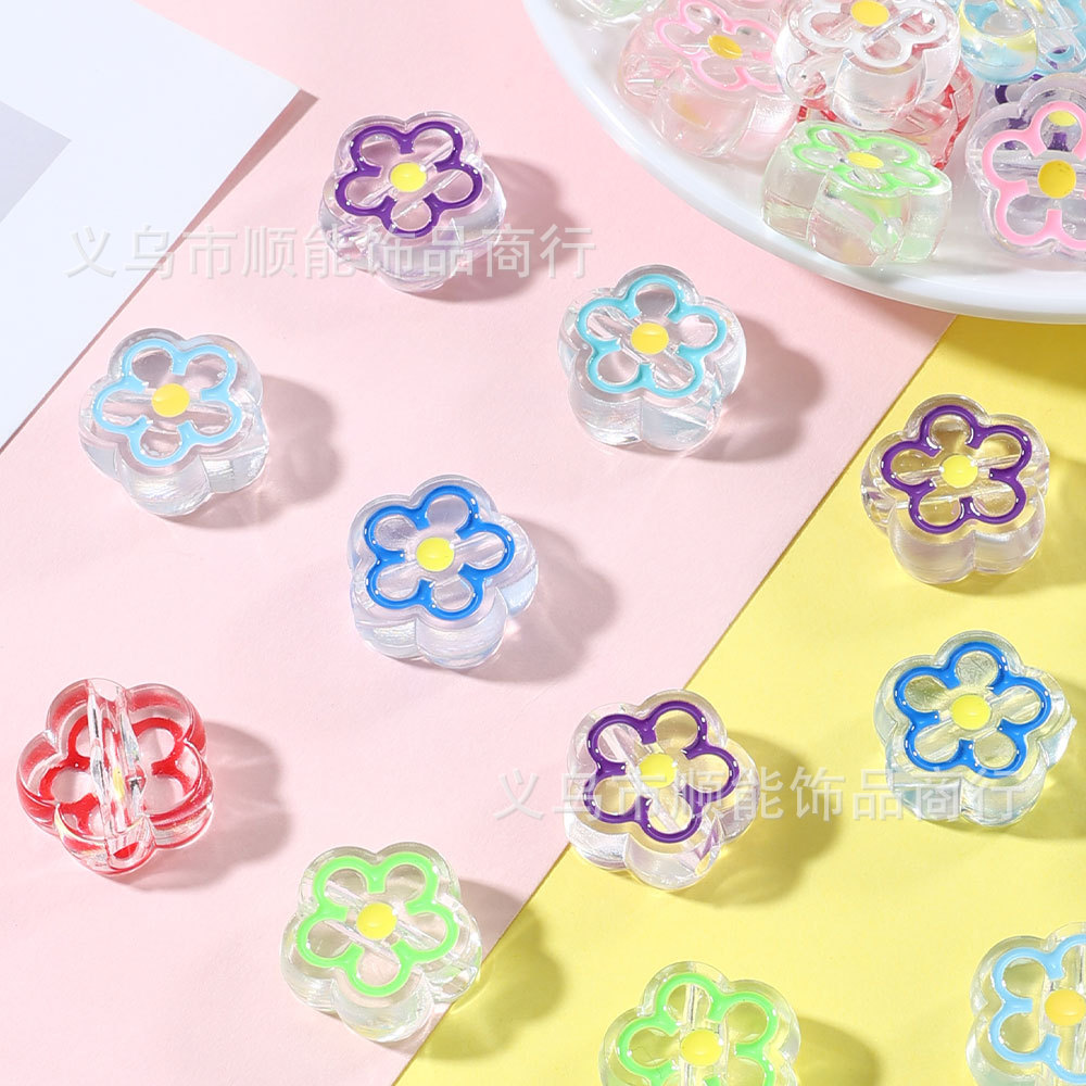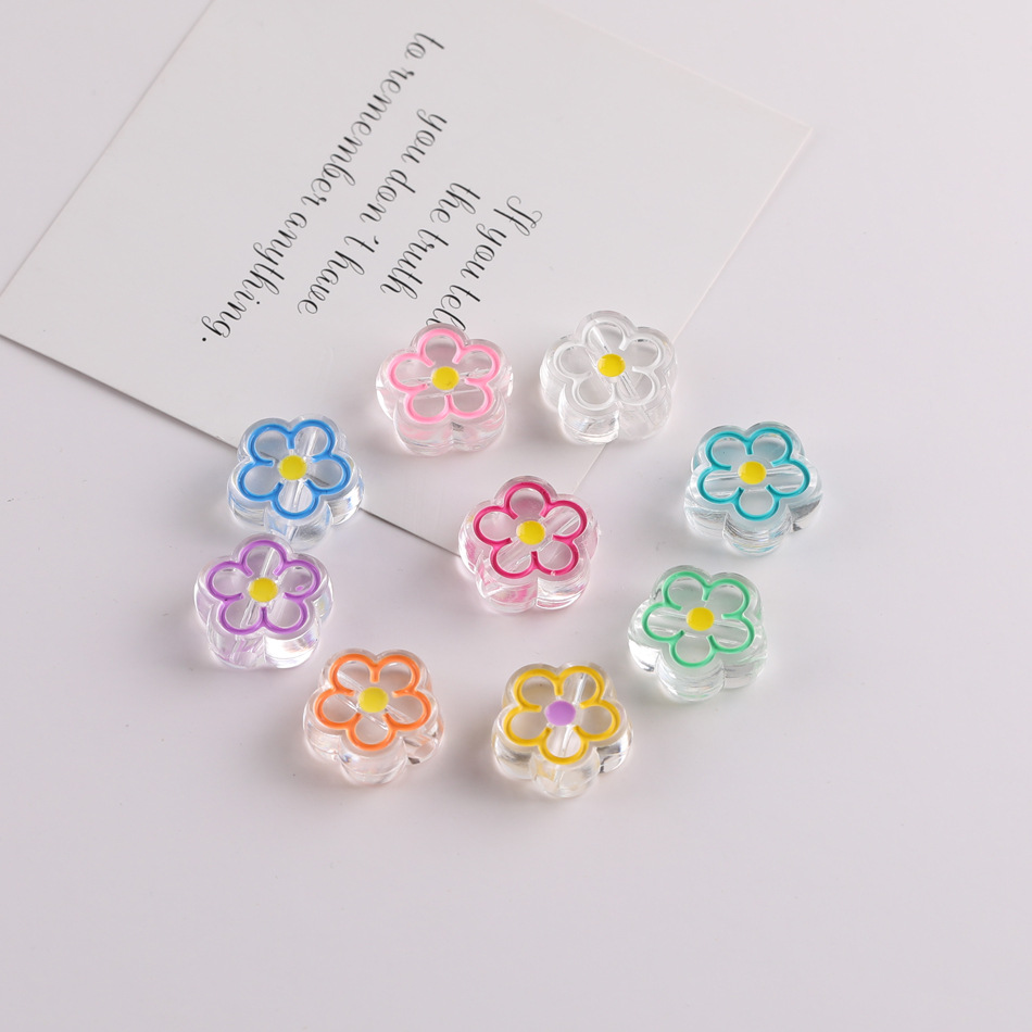 アクリル製ドリップオイルひまわり小花ビーズ 手作り散珠 ブレスレット用ビーズ DIYジュエリーアクセサリー