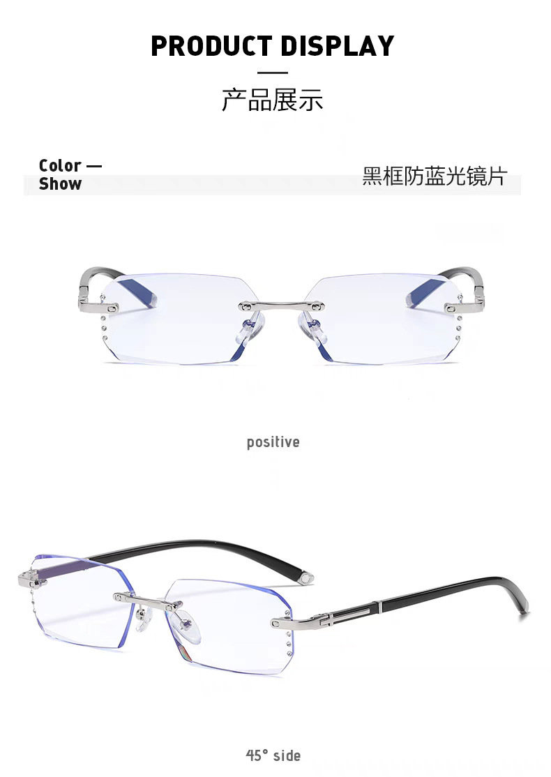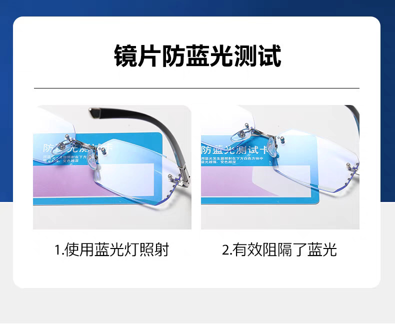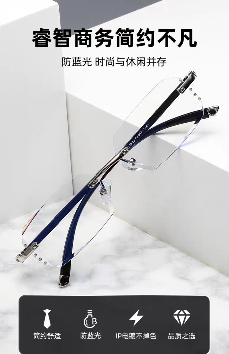 軽くて高級感のあるフレームレス超軽量純チタンブルーライトカット近視用度付きメガネフレーム女性用