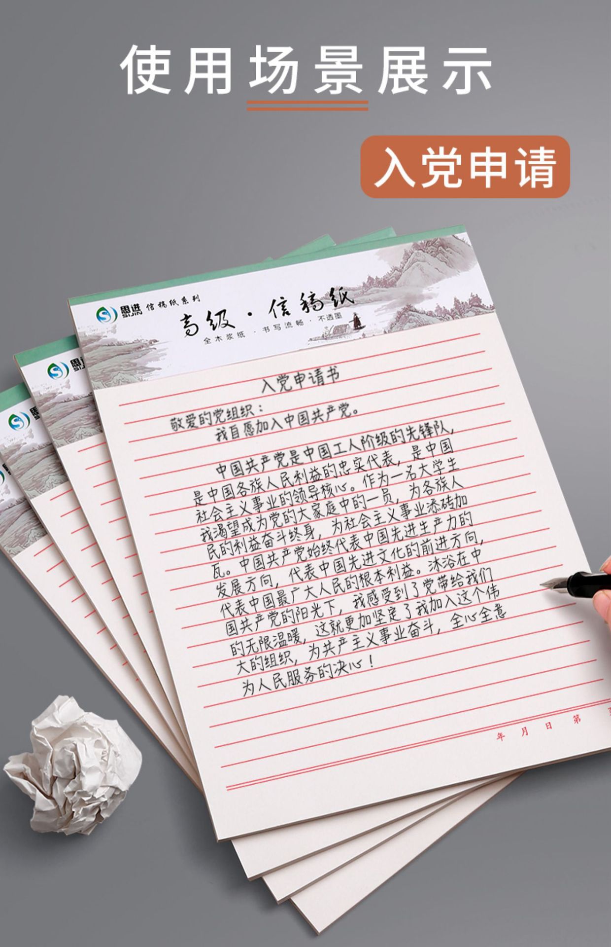 便箋原稿用紙の便箋と便箋用紙の入党申請書の大学生は本を使って簡単に手紙を書きます。