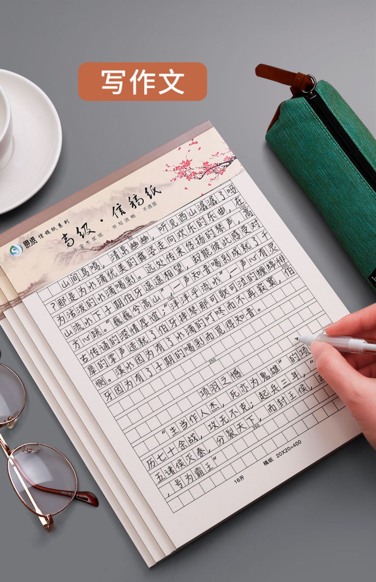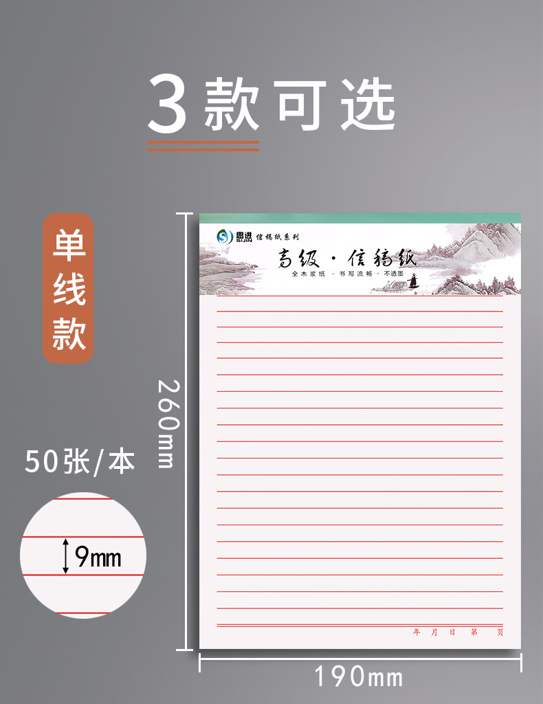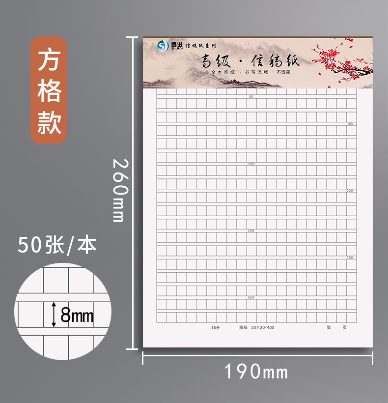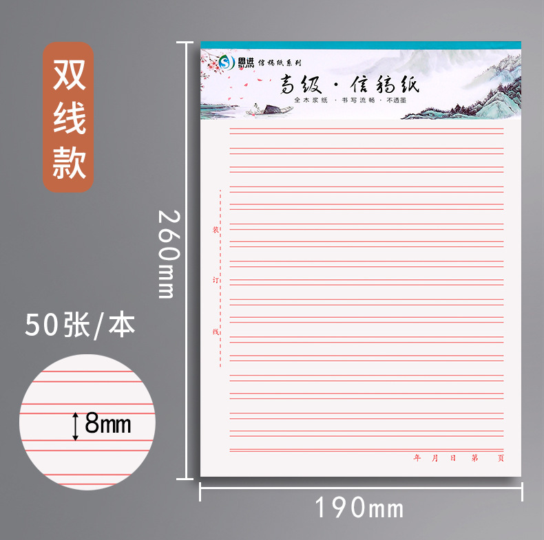 青竹林 16K 単線便箋横線二重線原稿用紙 400 グリッドレター署名手紙正方形構成用紙