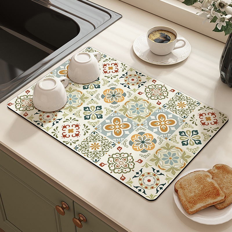 北欧レトロ花煉瓦珪藻泥吸水マットキッチンテーブルの水たまりマット
