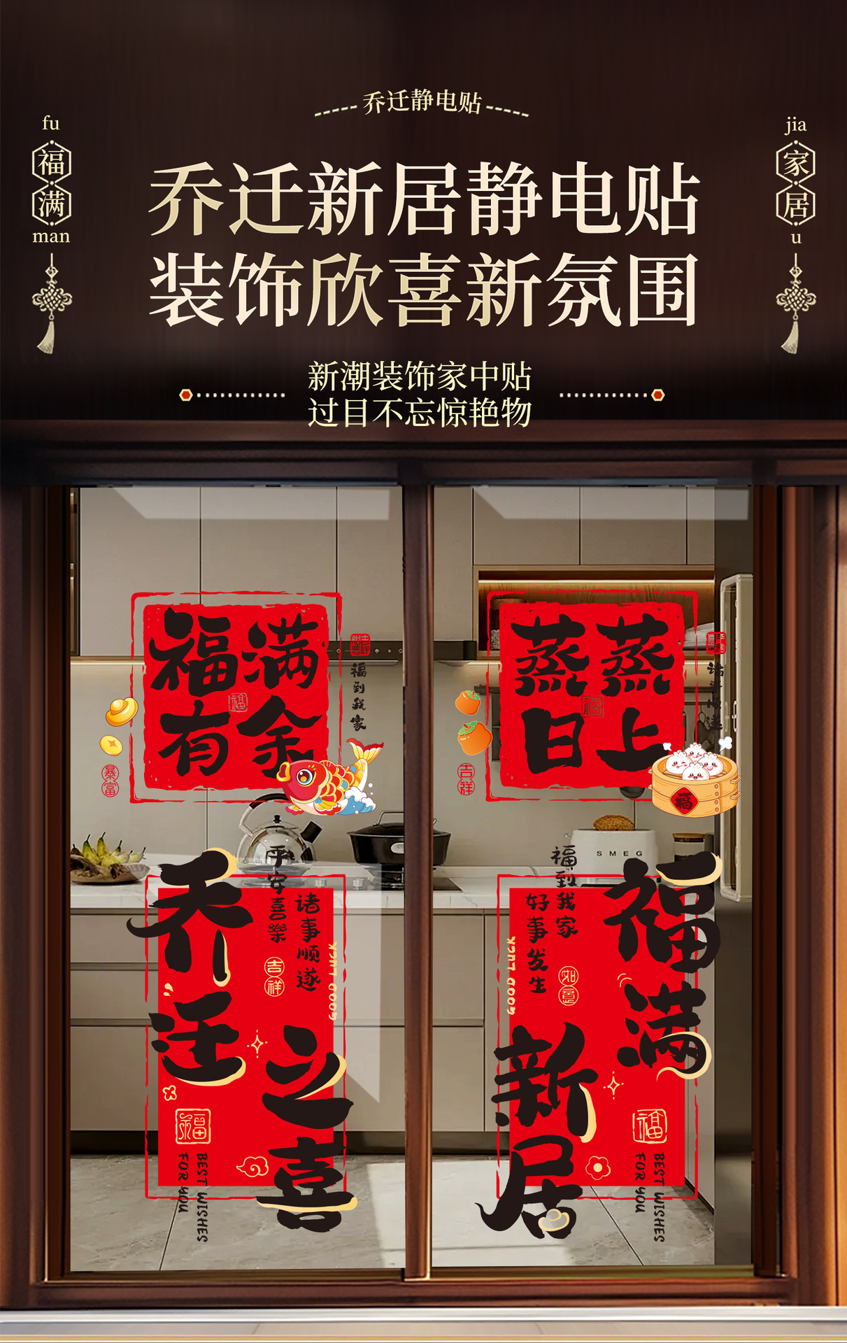 キッチンガラス静電気貼付喬迁の喜装飾ショーウインドー新居引っ越し住宅配置用品窓花飾り