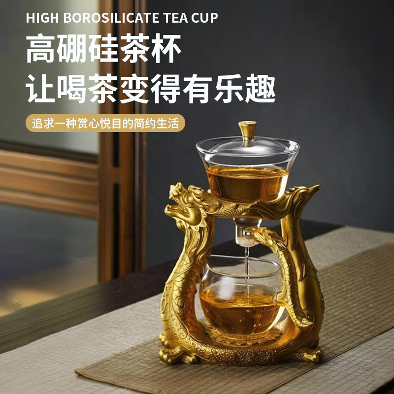 龍鳳呈祥宮灯ティーポット半自動ガラス怠け者茶器家庭用磁気ティーポット茶器セット
