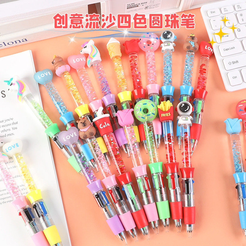 クリエイティブ流砂ミニ四色ボールペン多色ボールペンカラー押しペン学生用品賞品卸売り