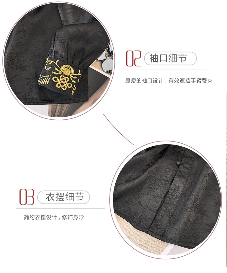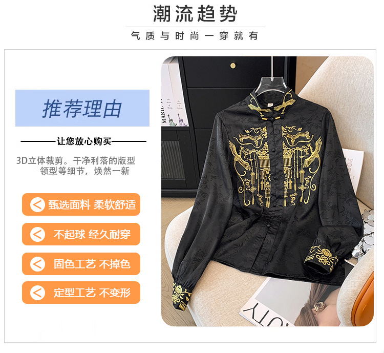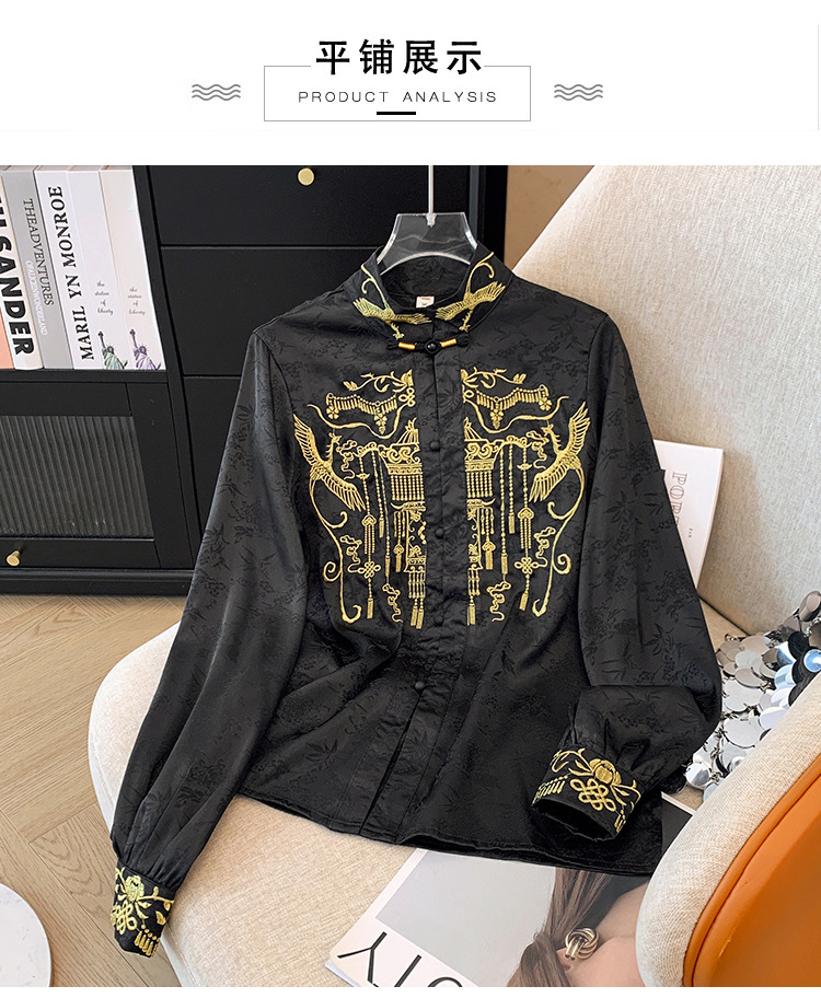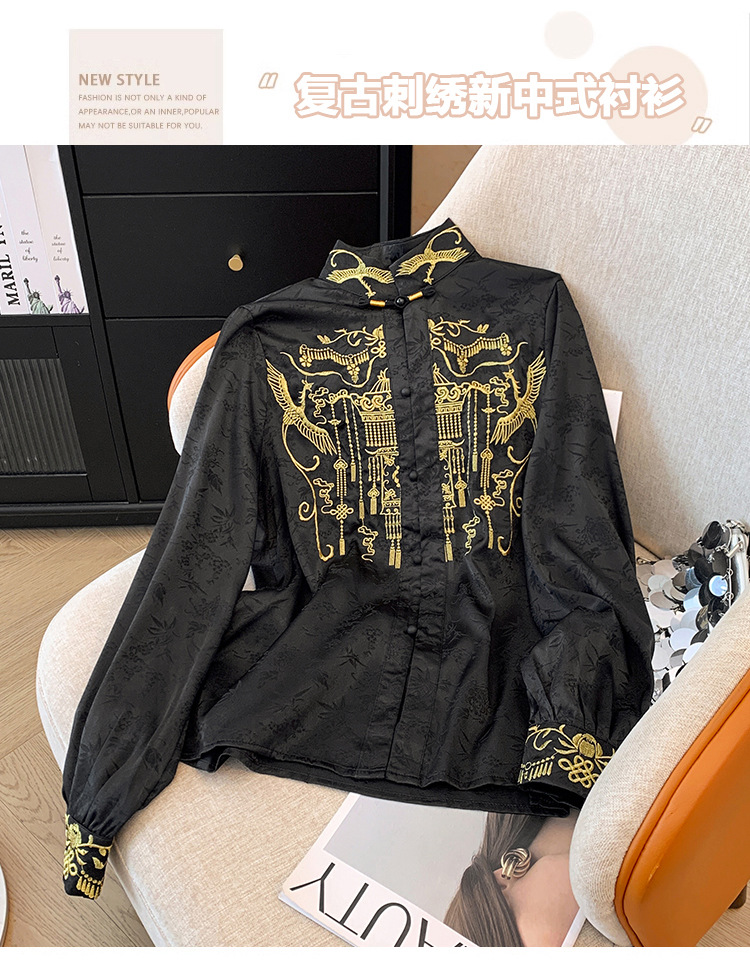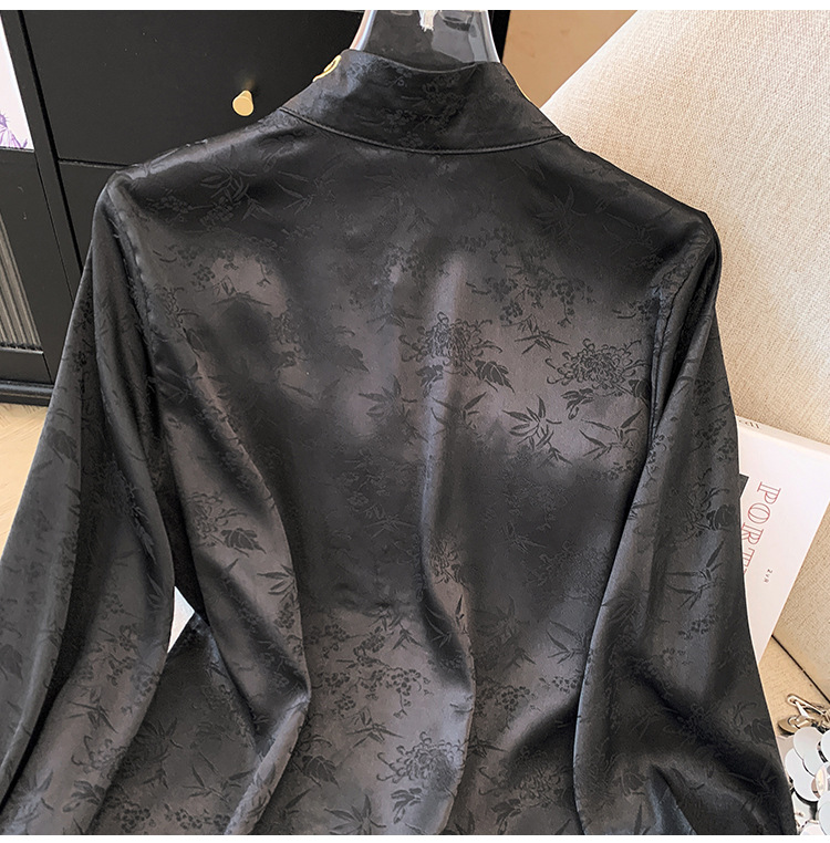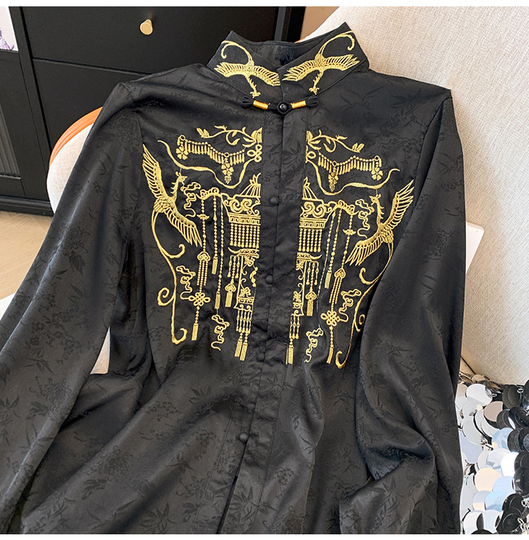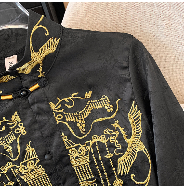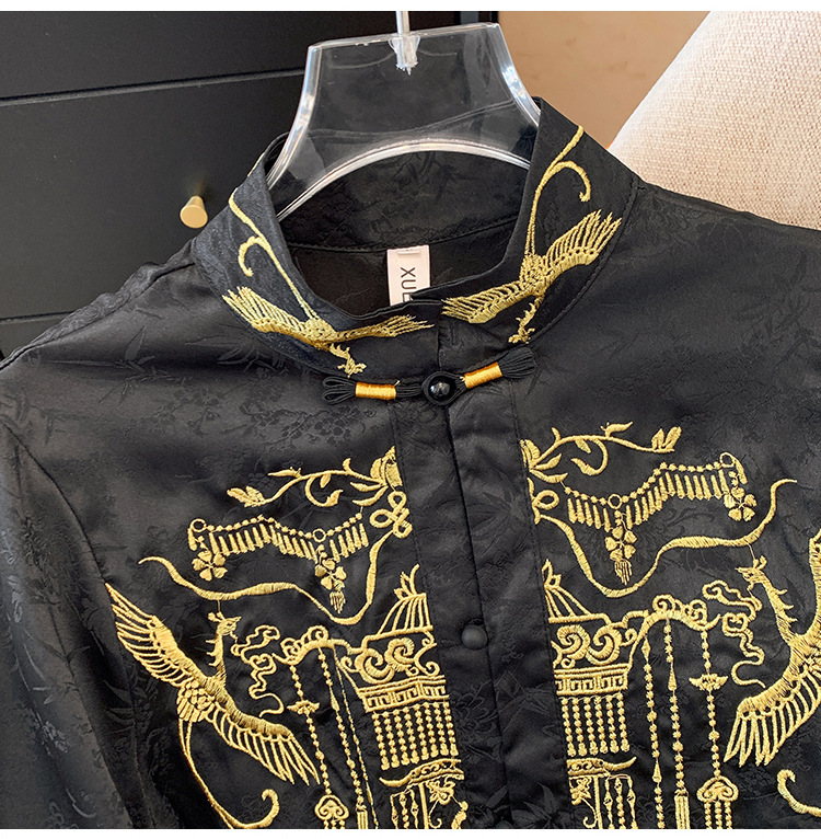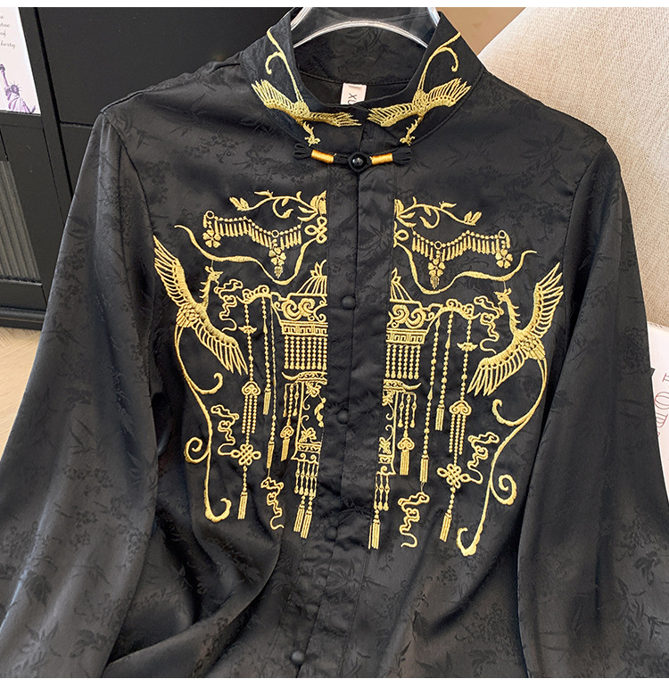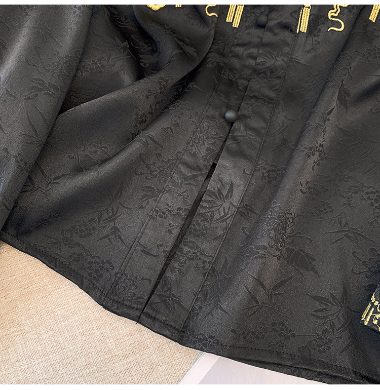 中国風刺繍ジャカード漢要素シャツ男女黒復古風春夏メンズ長袖シャツ漢服男