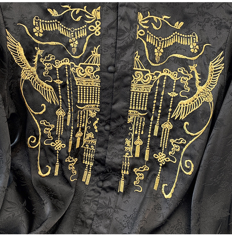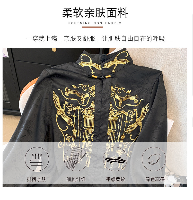 2022夏の新型長袖紳士服錦衣衛刺繍演出服班服刺繍長シャツベルトセット男