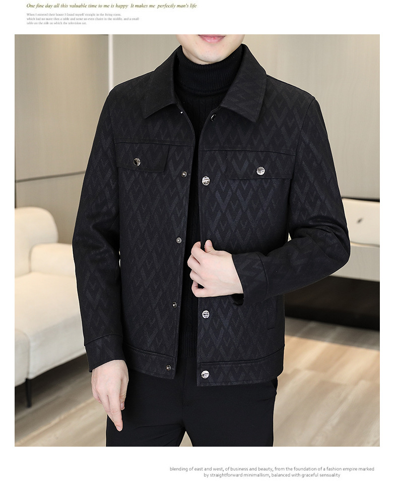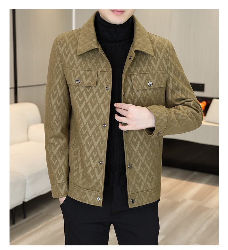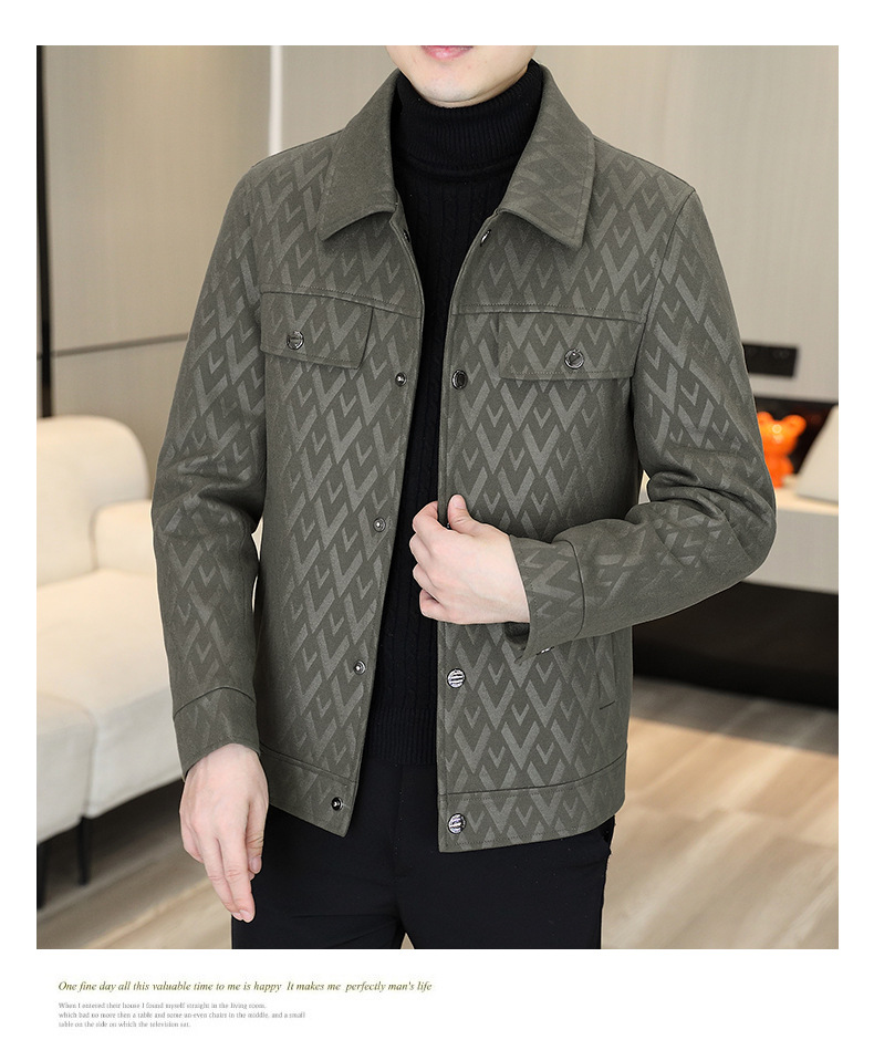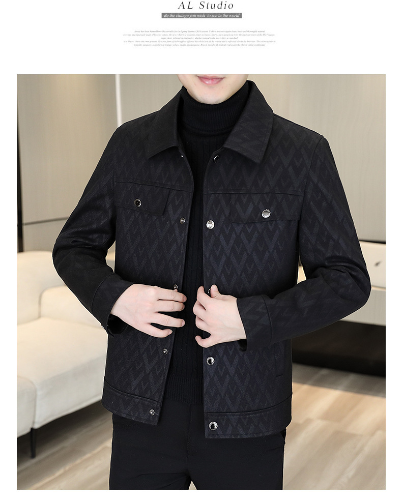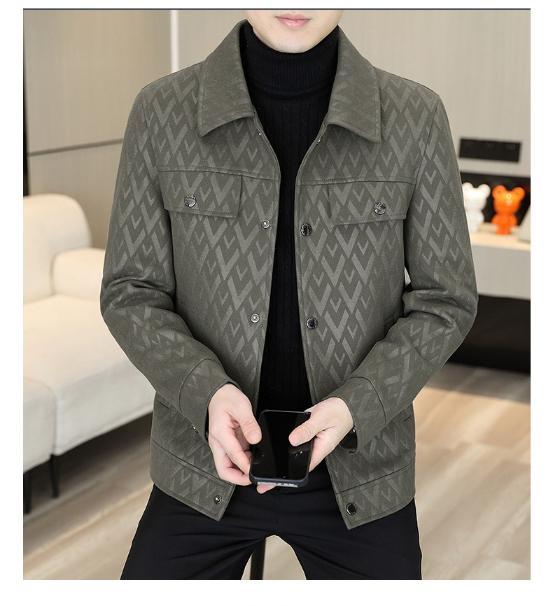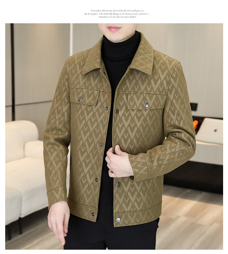 提花夹克男士外套2025新款翻领上衣服男款加绒加厚秋冬装潮