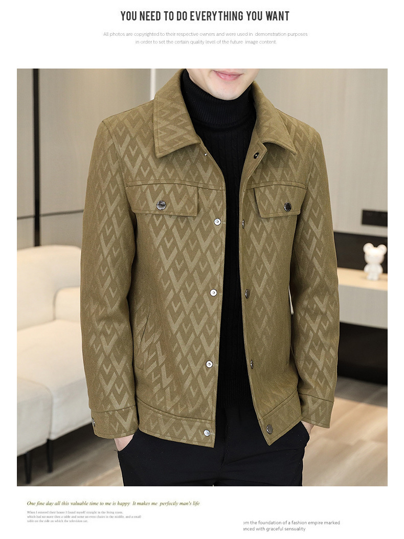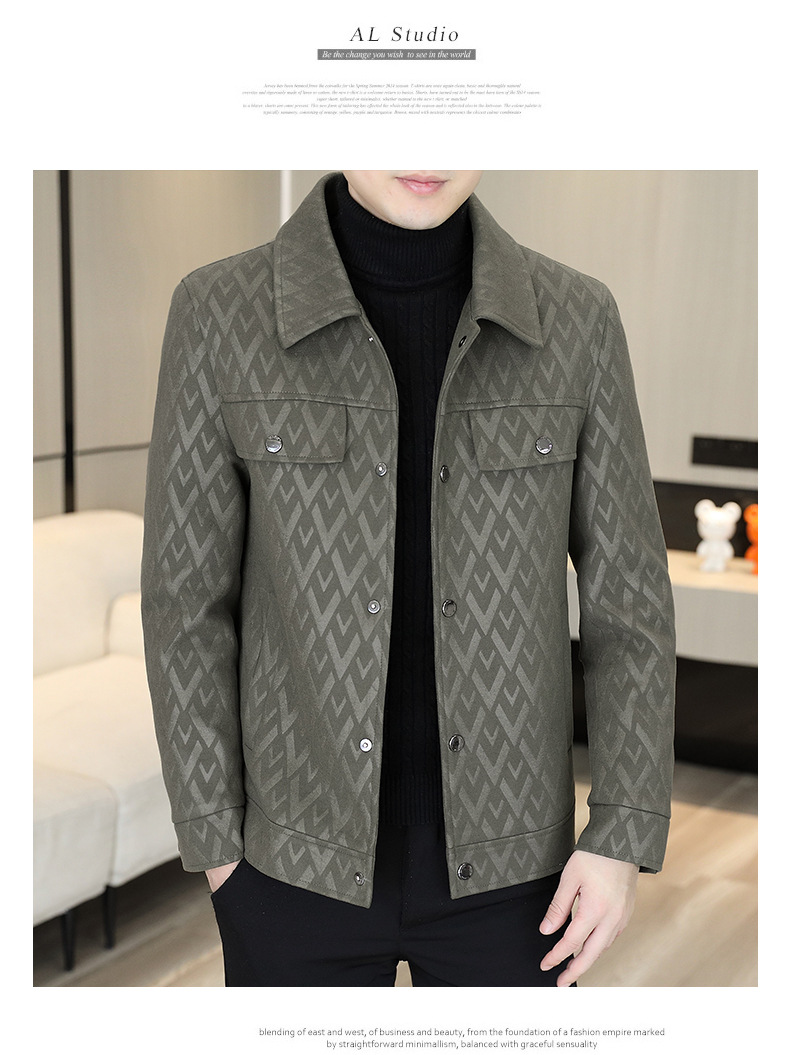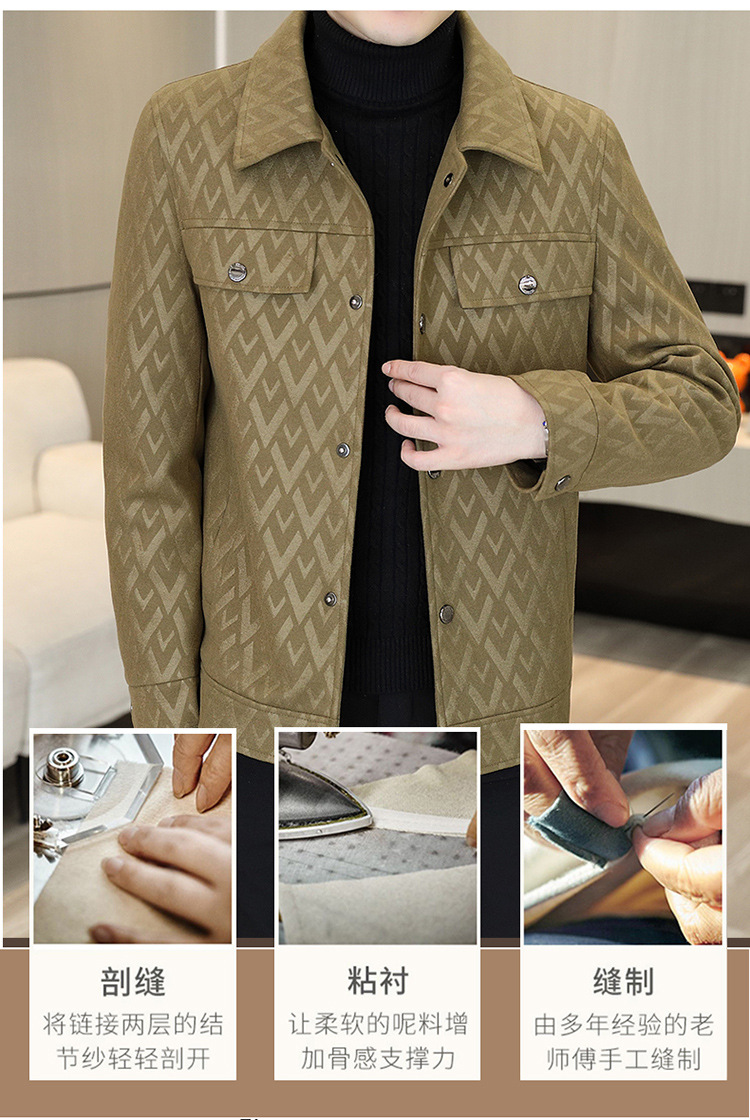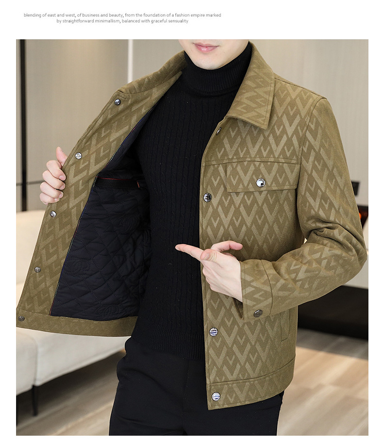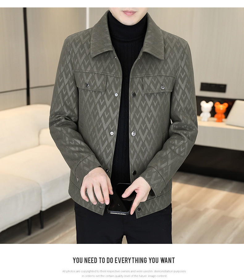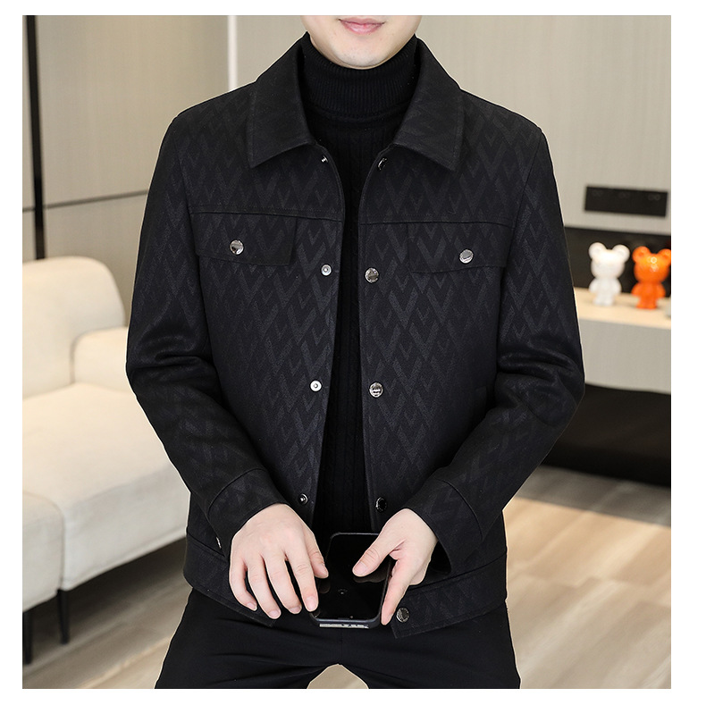 提花夹克男士外套2025新款翻领上衣服男款加绒加厚秋冬装潮