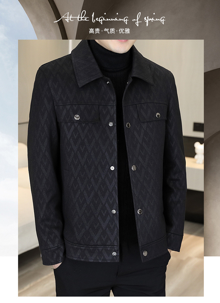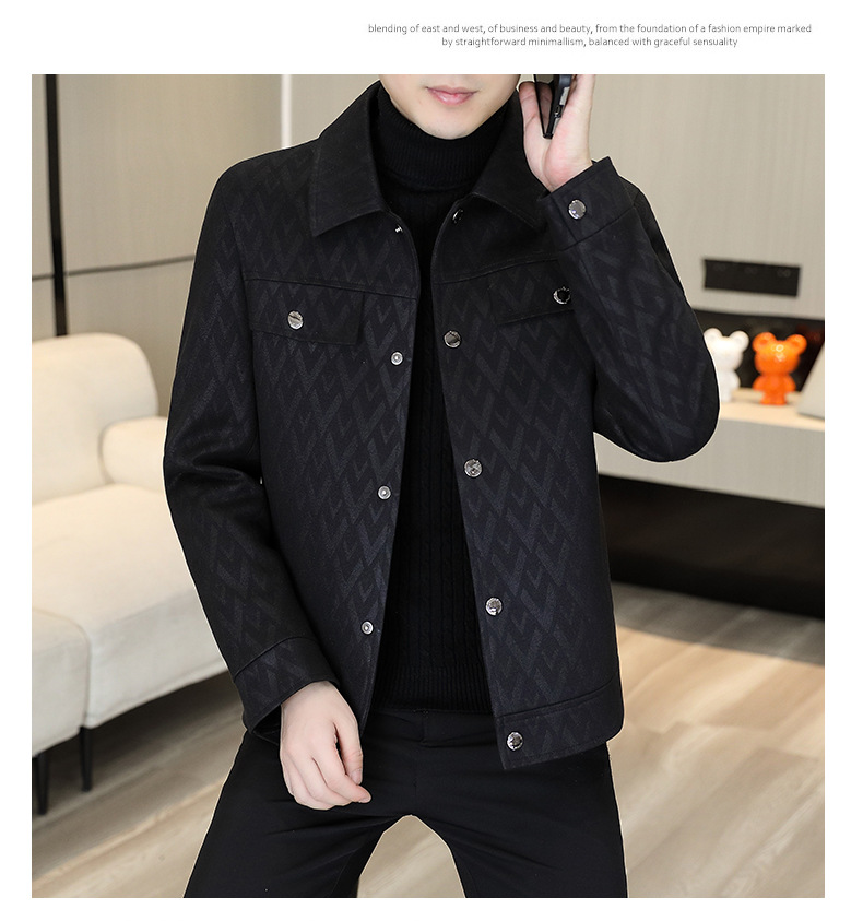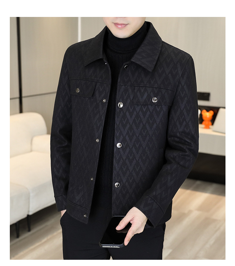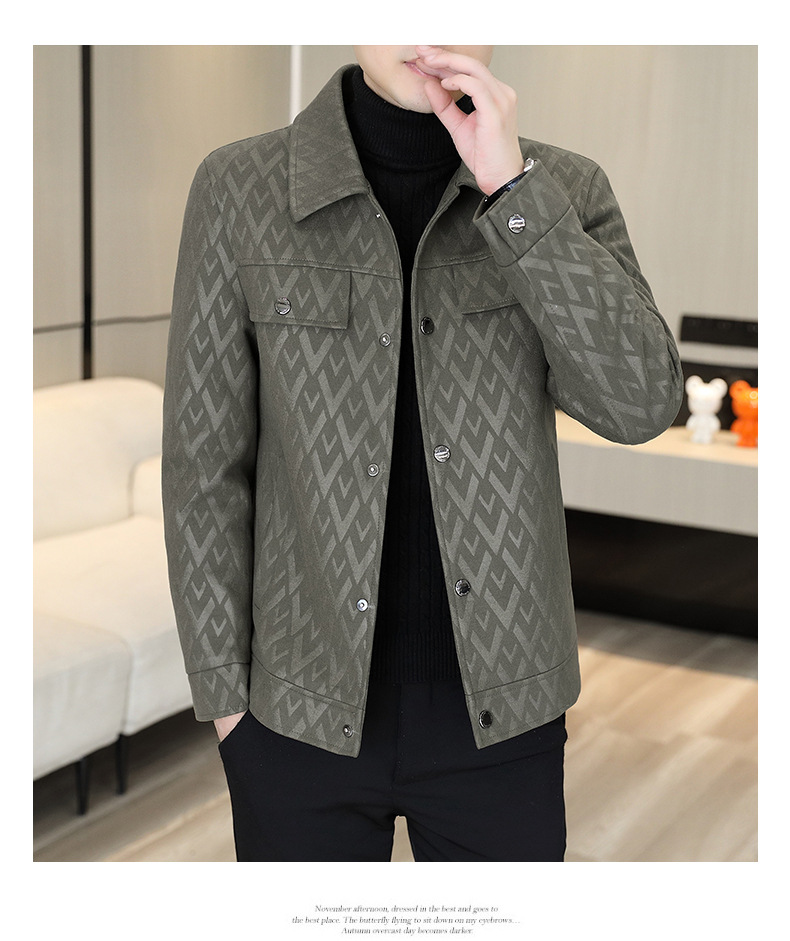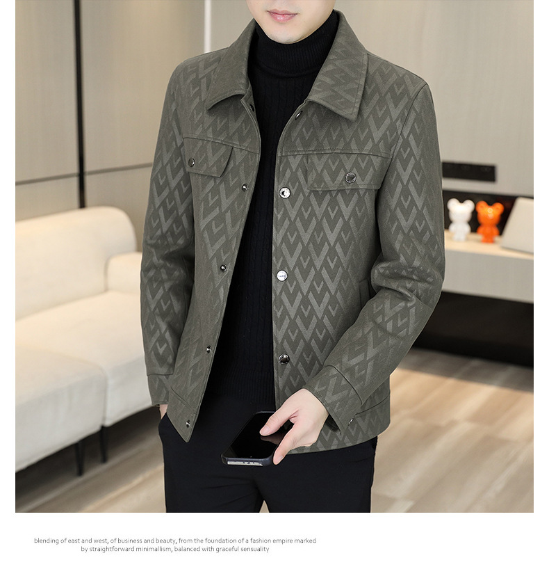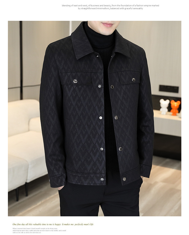 提花夹克男士外套2025新款翻领上衣服男款加绒加厚秋冬装潮