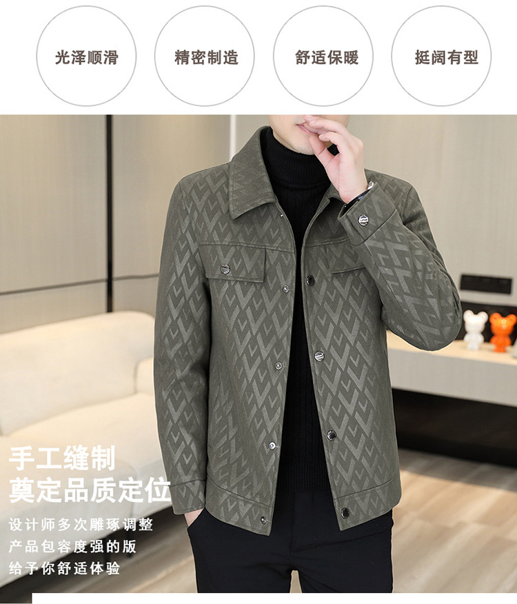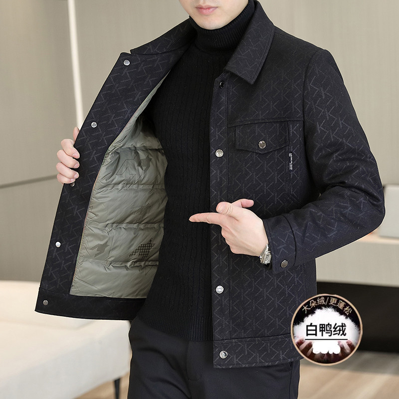 2025冬季提花夹克男士翻领羽绒服白鸭绒保暖外套中青年时尚代发