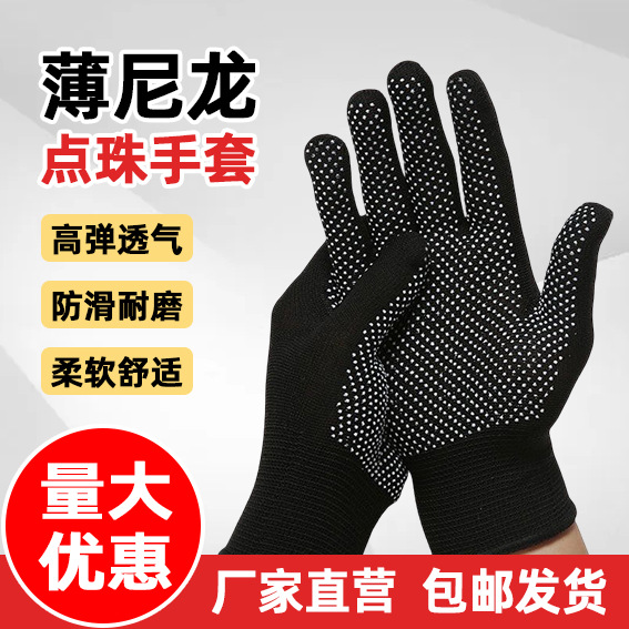 包郵便ナイロン点塑性手袋軽薄通気滑り止めナイロン労働保護手袋pvc点珠クリーン作業手袋