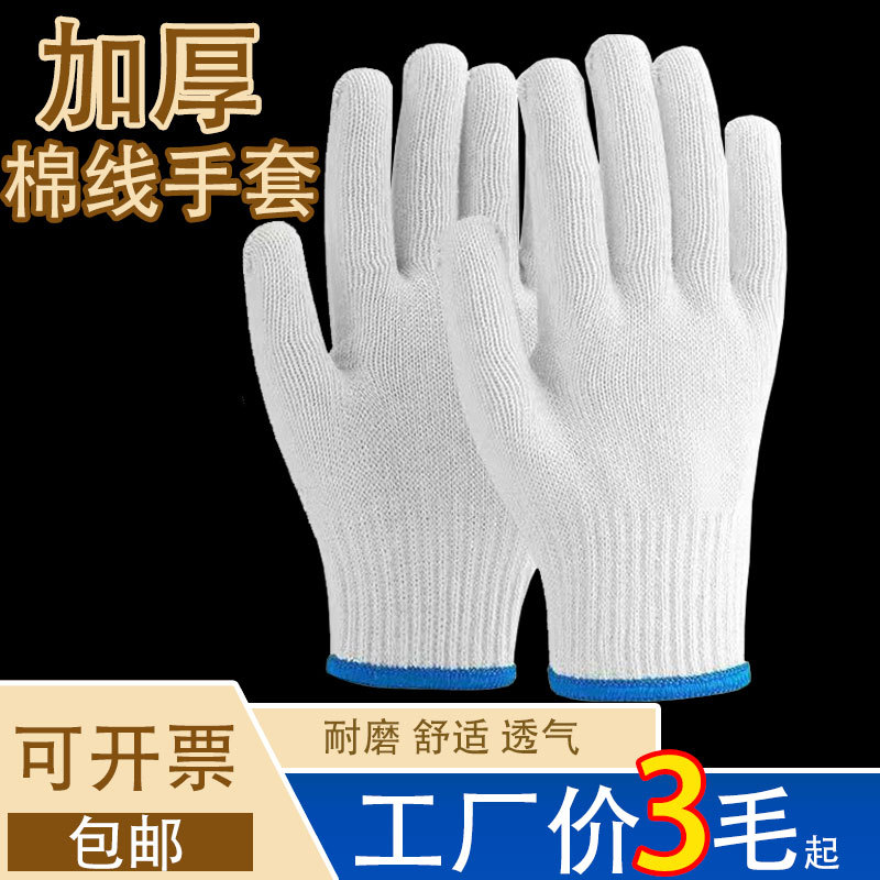 糸手袋、労働保護手袋、送料無料、厚手の綿糸、綿糸、ナイロン白手袋、労働保護、耐摩耗性、建設現場作業卸売