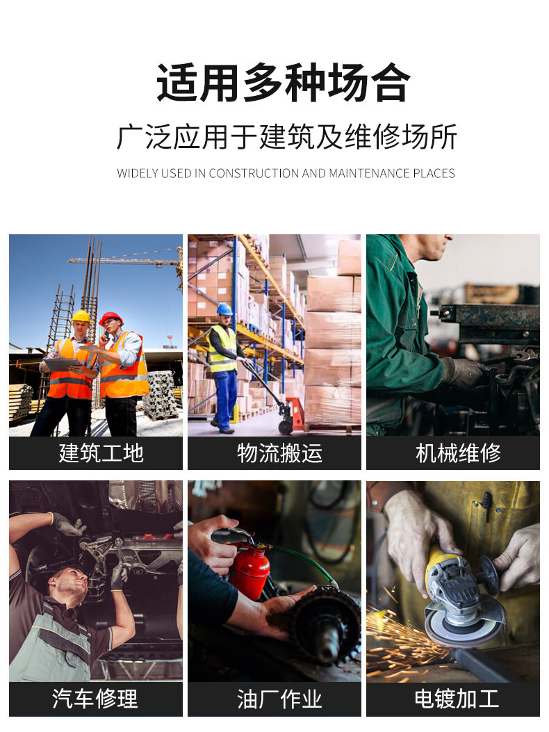 使用範囲 工場労働保護、エチケット、文具、おもちゃ、宿題、貨物輸送、建設現場、ハードウェア加工、鉄鋼製造、プラスチック工場、園芸、引っ越し、農業、家事、掃除、その他の一般作業、労働保護手袋