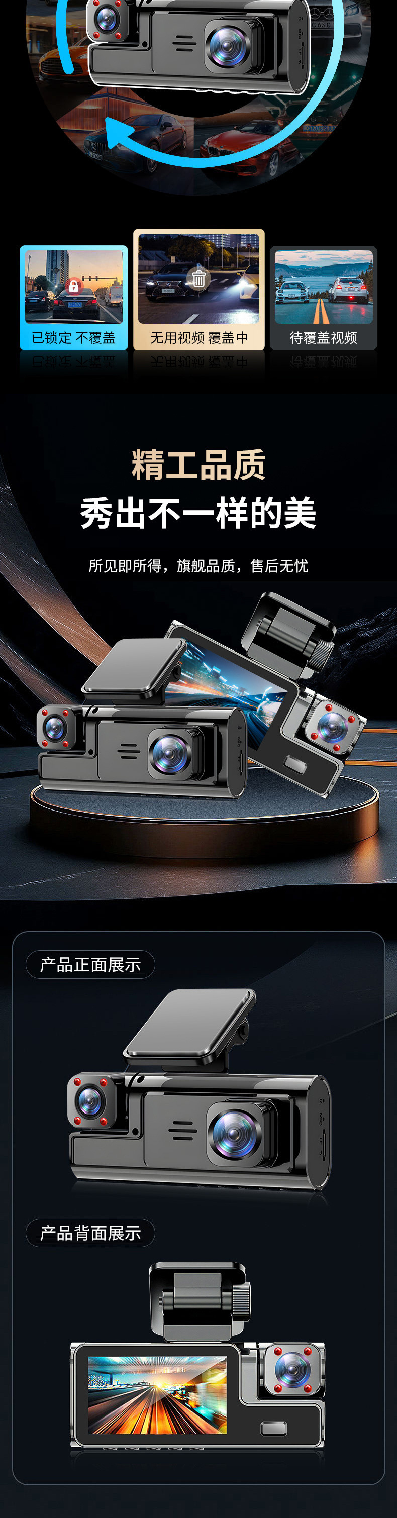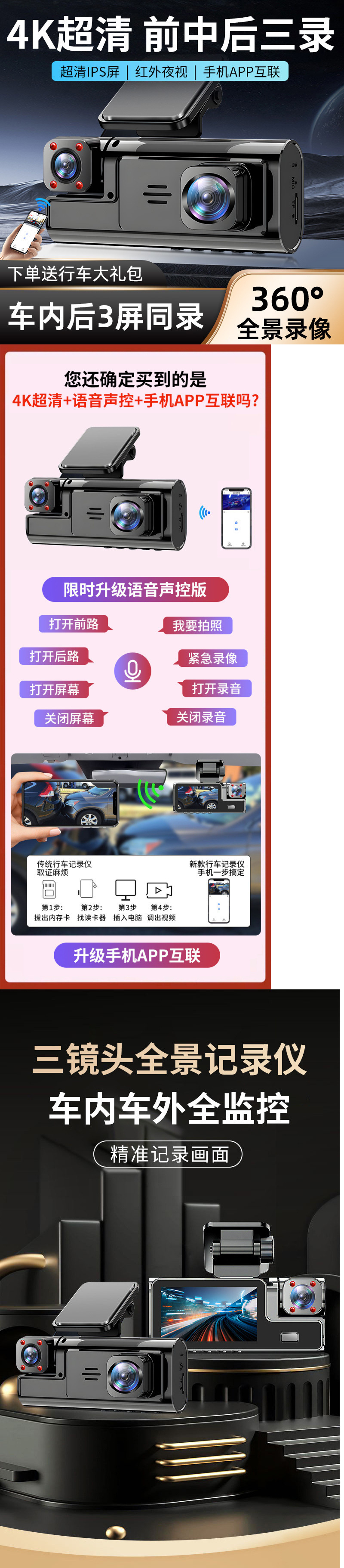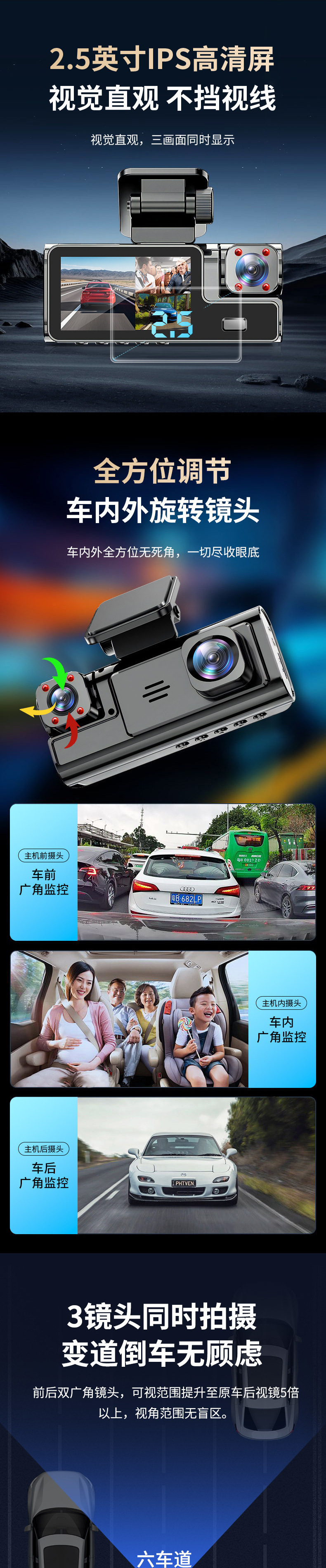 2025新型ドライブレコーダ三撮像スクリーン360 ° パノラマビデオ4超高精細赤外暗視無線