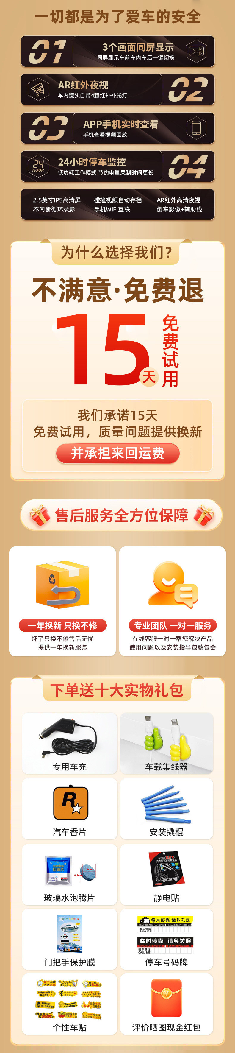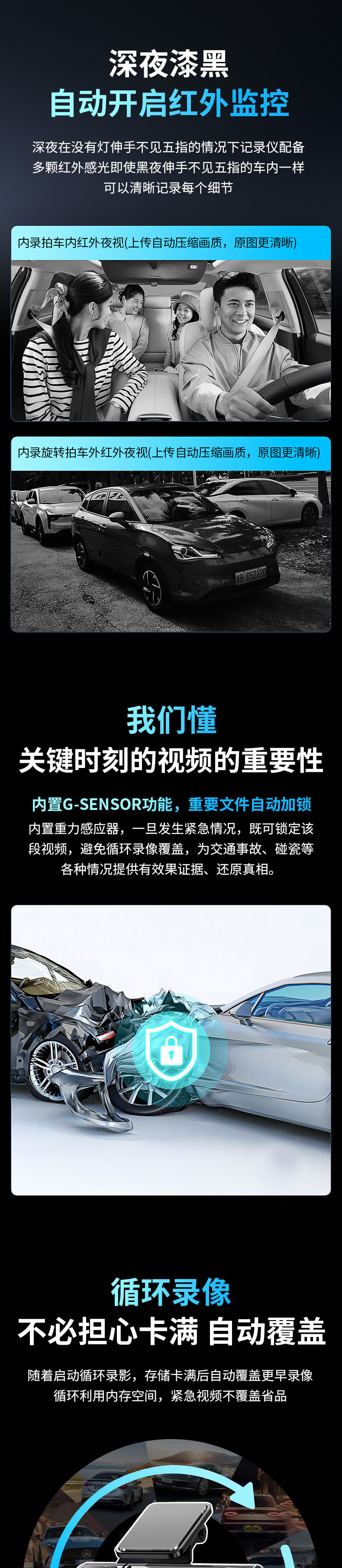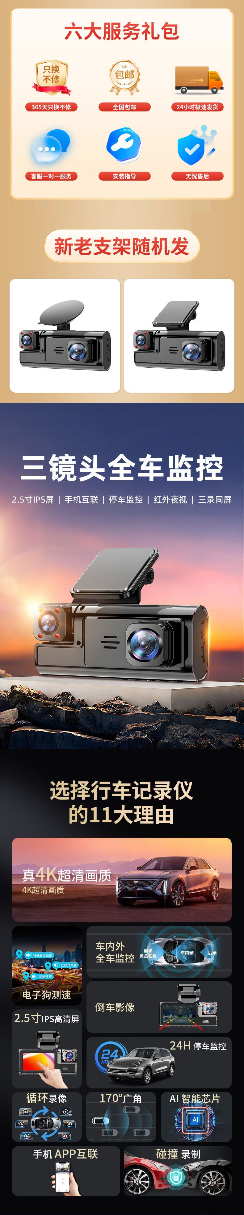 2025新型ドライブレコーダ三撮像スクリーン360 ° パノラマビデオ4超高精細赤外暗視無線