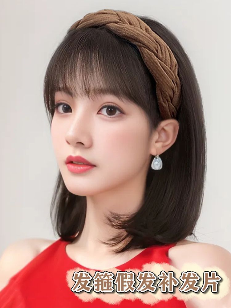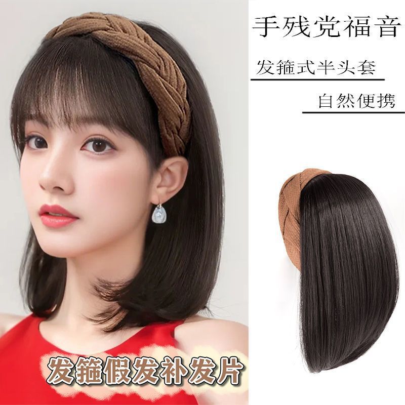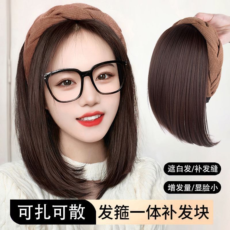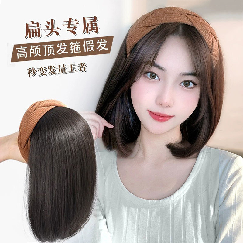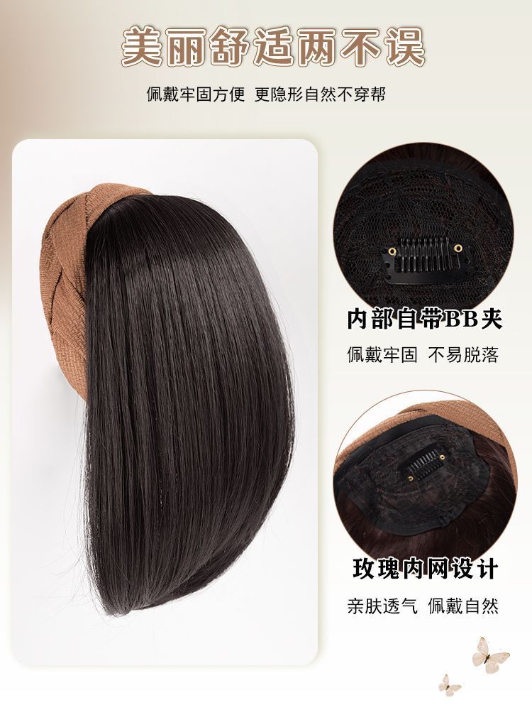 カチューシャのかつら一体の女性の頭の上で髪を補充します。