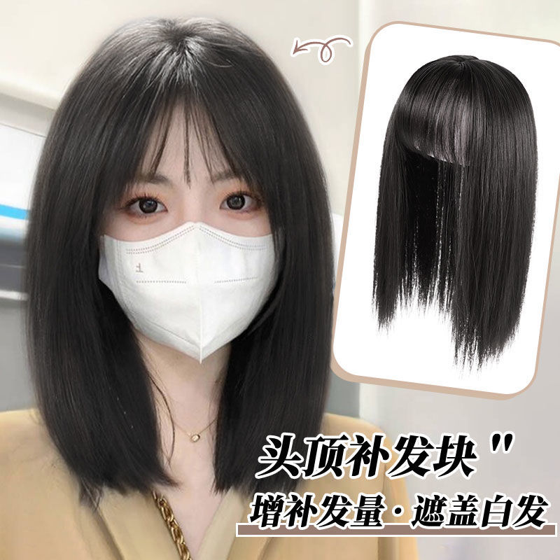 真髪の頭の上に髪を追加します。女性は白髪をかぶせてハゲを隠します。