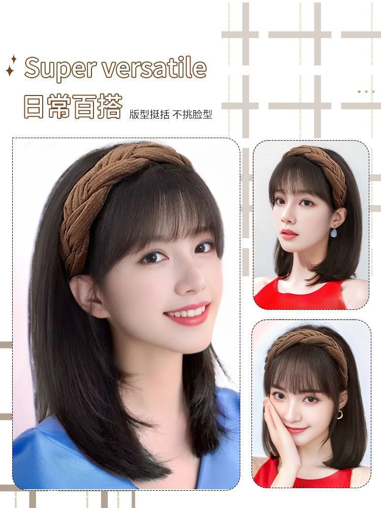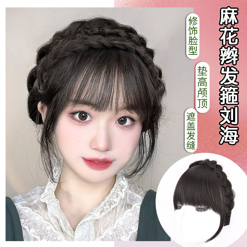 空気の前髪のかつらの女性の自然な額の魚の骨のお下げのかつらのカチューシャの前髪の一体式のステルスの偽の前髪の切れ