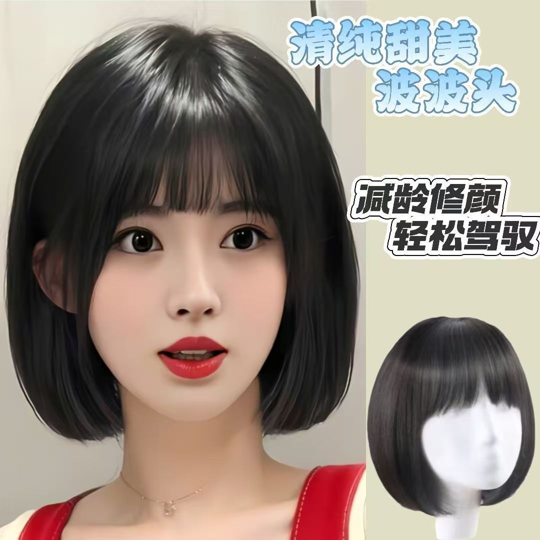女性用ショートヘアウィッグ、フルヘッドギア、ファッショナブルな年齢軽減、自然なシミュレーションのボブヘアスタイル、フルウィッグセット
