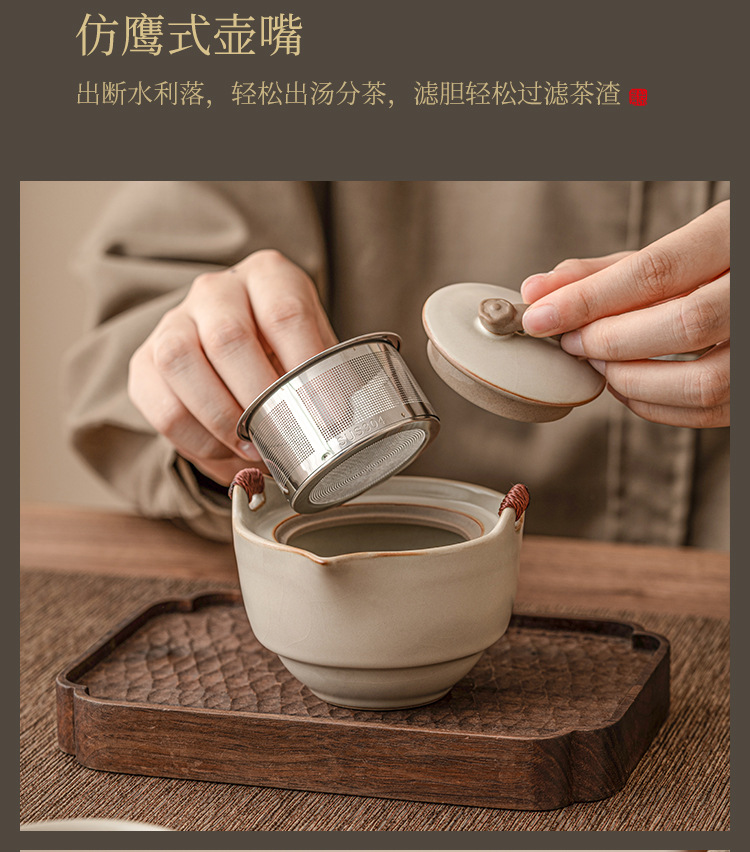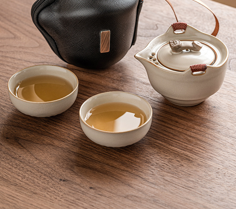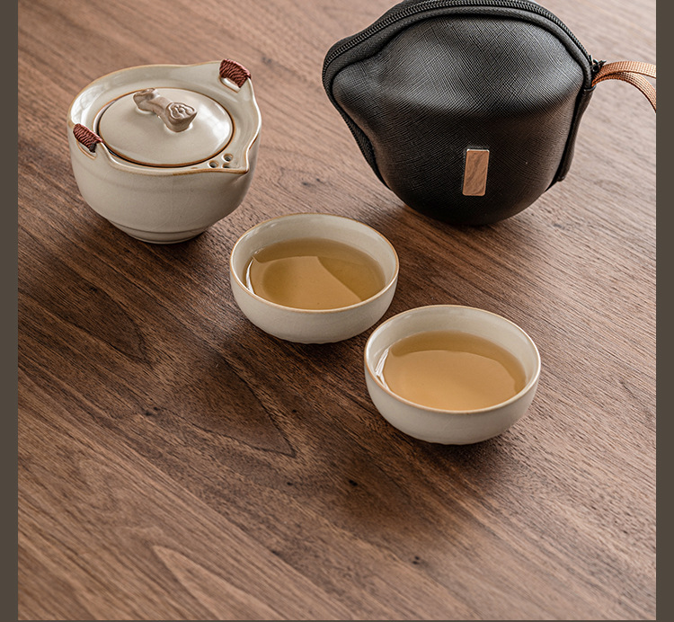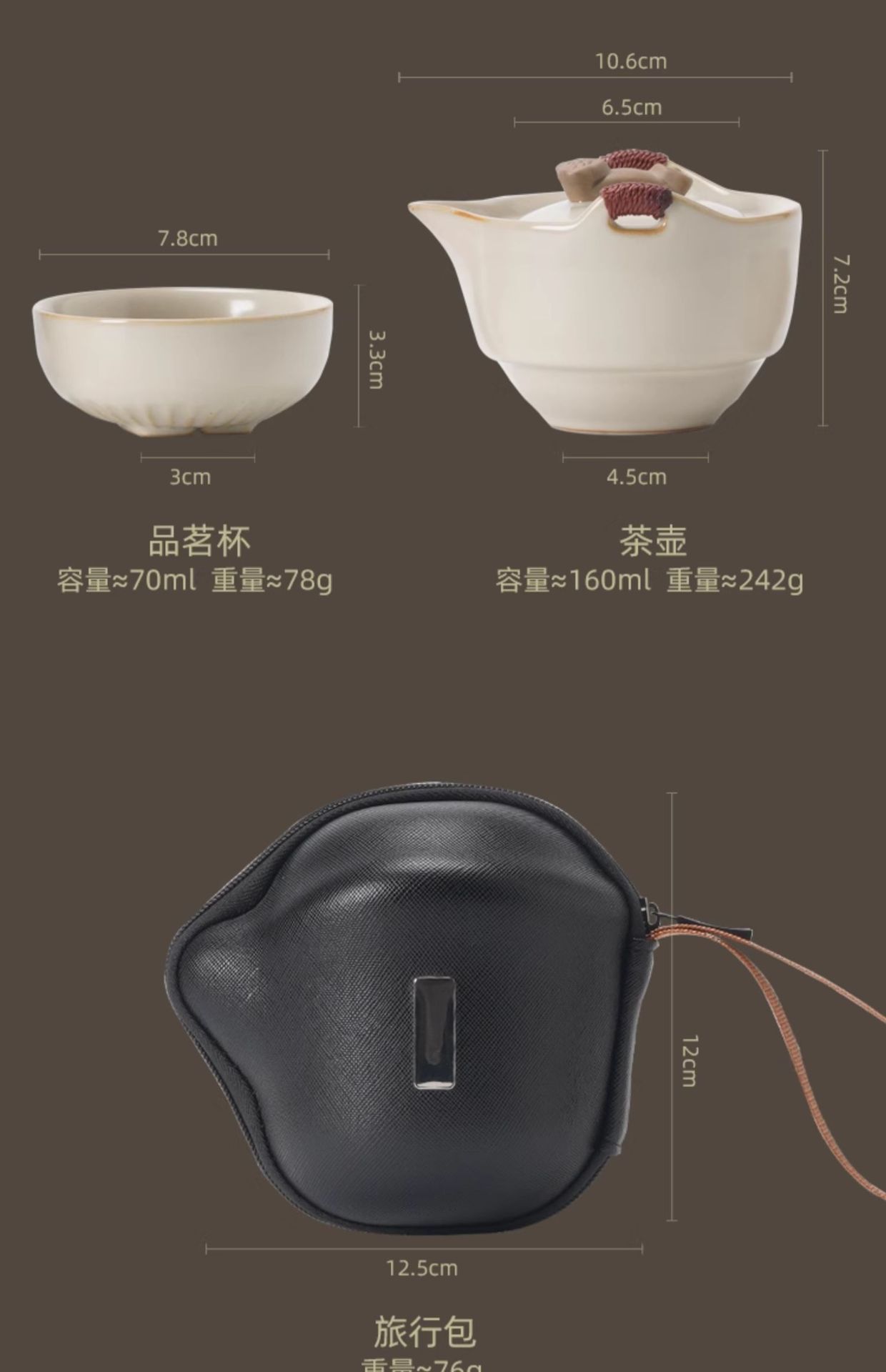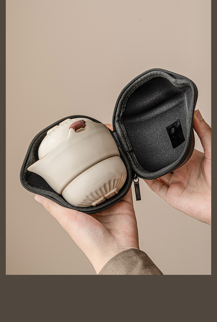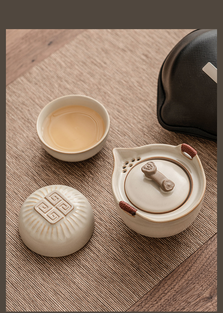 ベージュ Ru Kiln_Ruyi トラベル ティー セット,ベージュ Ru Kiln_Ruyi トラベルティーセット [ステンレスティーフィルター付き]