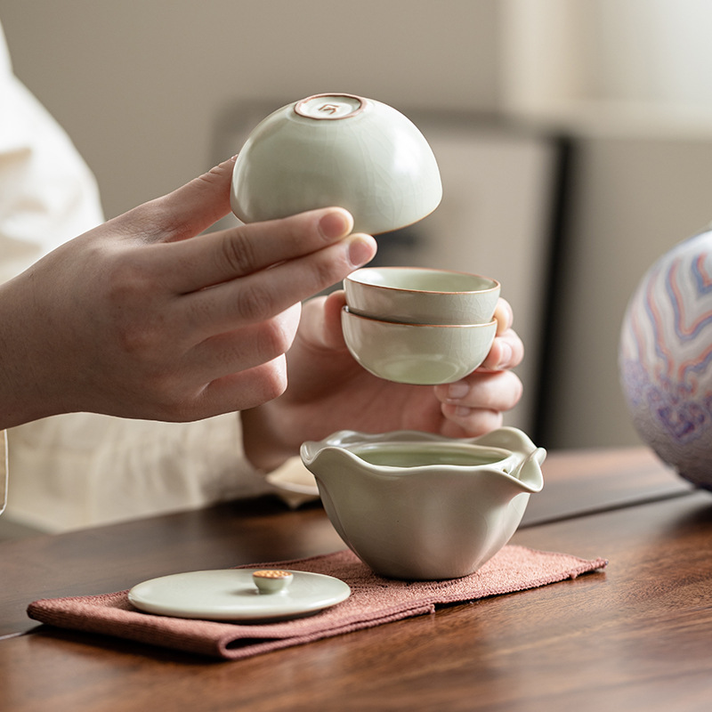 汝窯は一人で携帯旅行の茶器セットを飲みます。