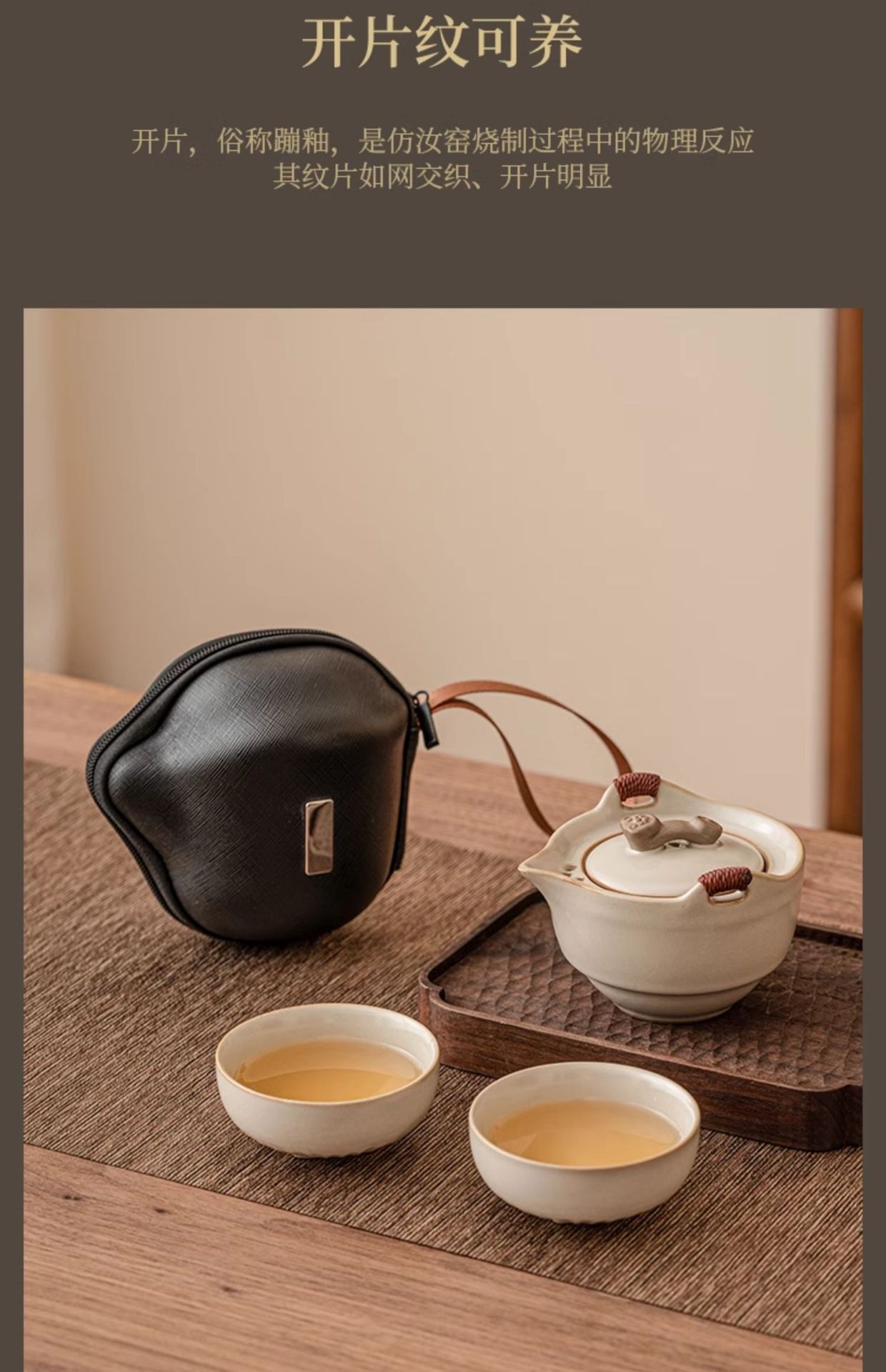 米黄汝窯旅行茶器セット携帯式屋外キャンプ陶磁器快客杯一壺二杯一人